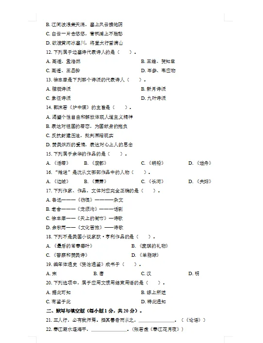 22.春江潮水连海平,。(张若虚《春江花月夜》)
