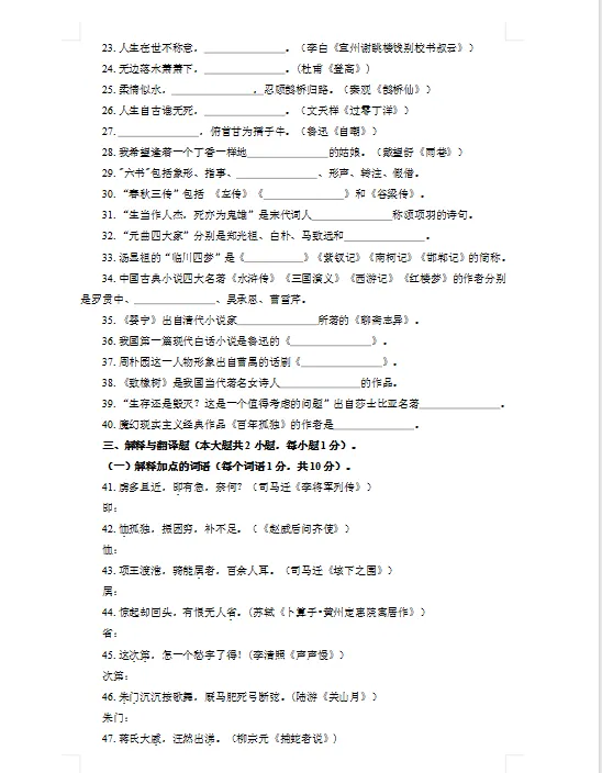 26.人生自古谁无死,。(文天样《过零丁洋》)