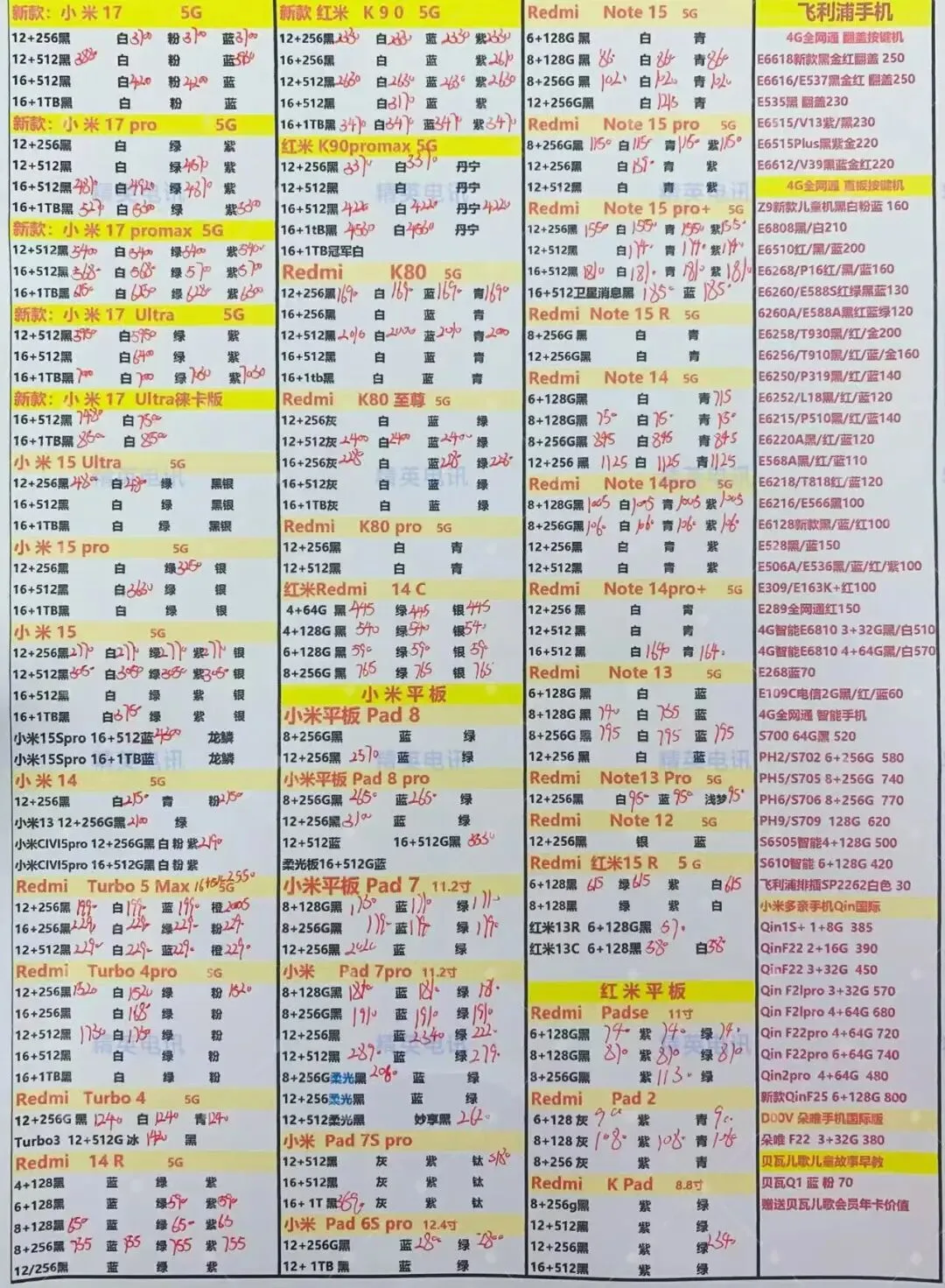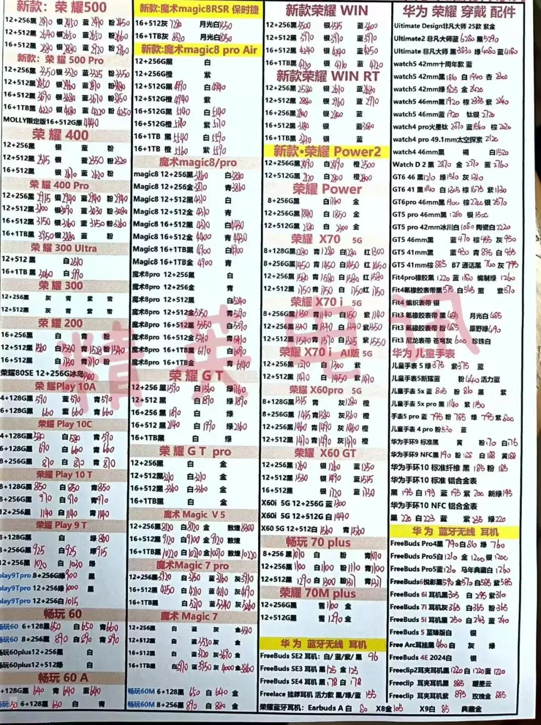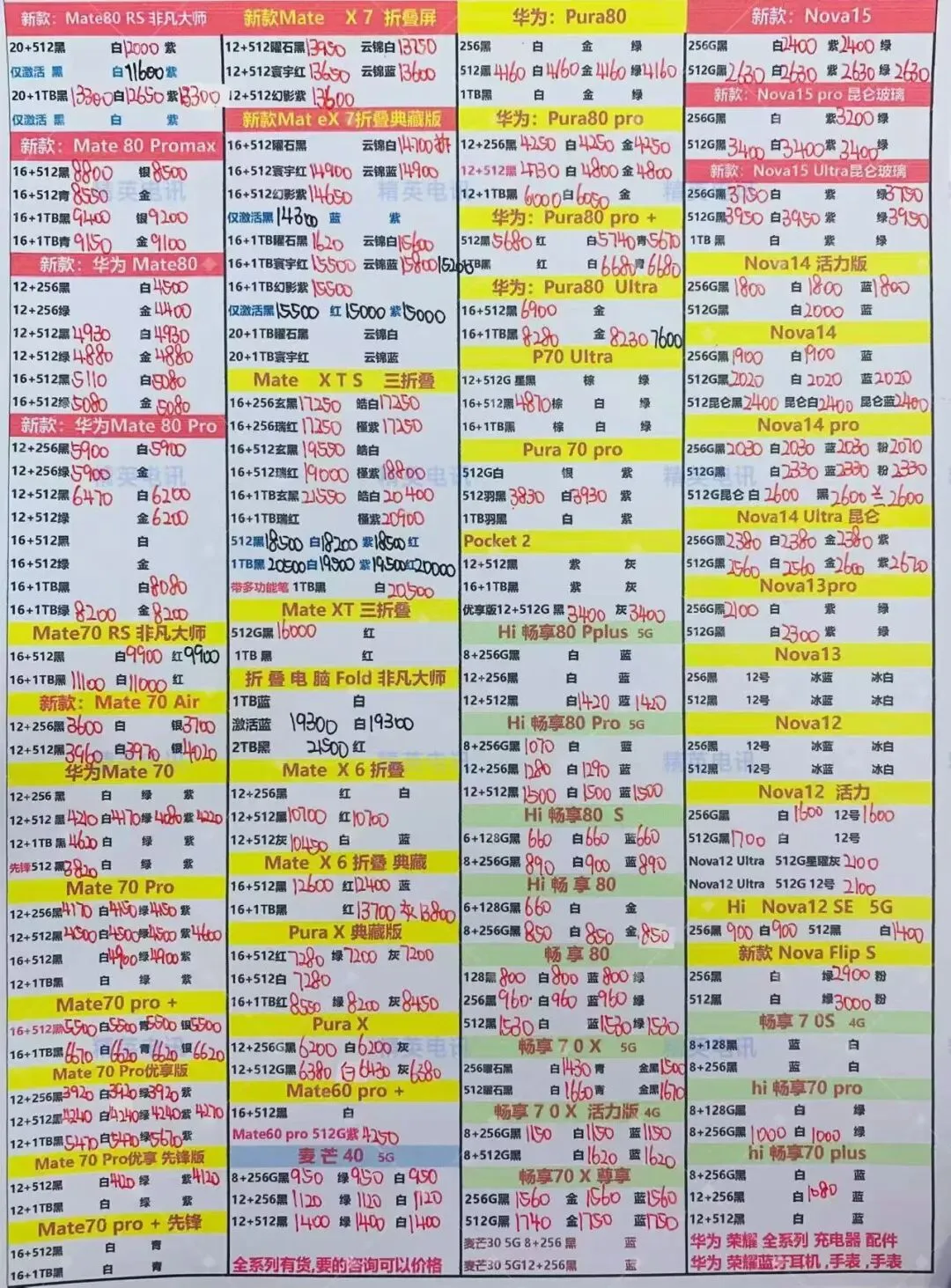 最新全新原封国行华为荣耀小米一加红魔等手机批发报价
