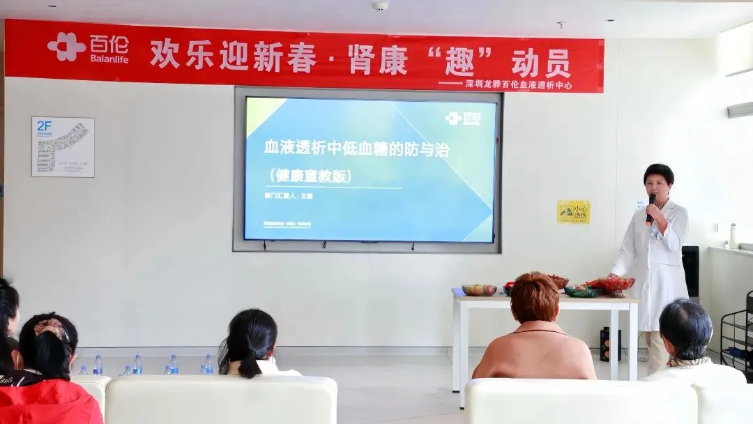 活动现场,百伦集团医务主任、深耕肾内科临床三十余年的王丽教授,为在场肾友开展《血液透析中低血糖的防与治》专题科普讲座。她结合临床典型案例,用通俗语言系统解析透析相关性低血糖的发病机制、识别要点及处置流程,为肾友日常透析安全提供了科学可操作的指导。肾友们纷纷表示:“平时透析总担心出现低血糖,又不知道该怎么判断、怎么处理,这场讲座解了我们的燃眉之急,听完心里更踏实,也学会了如何守护自身透析安全。”