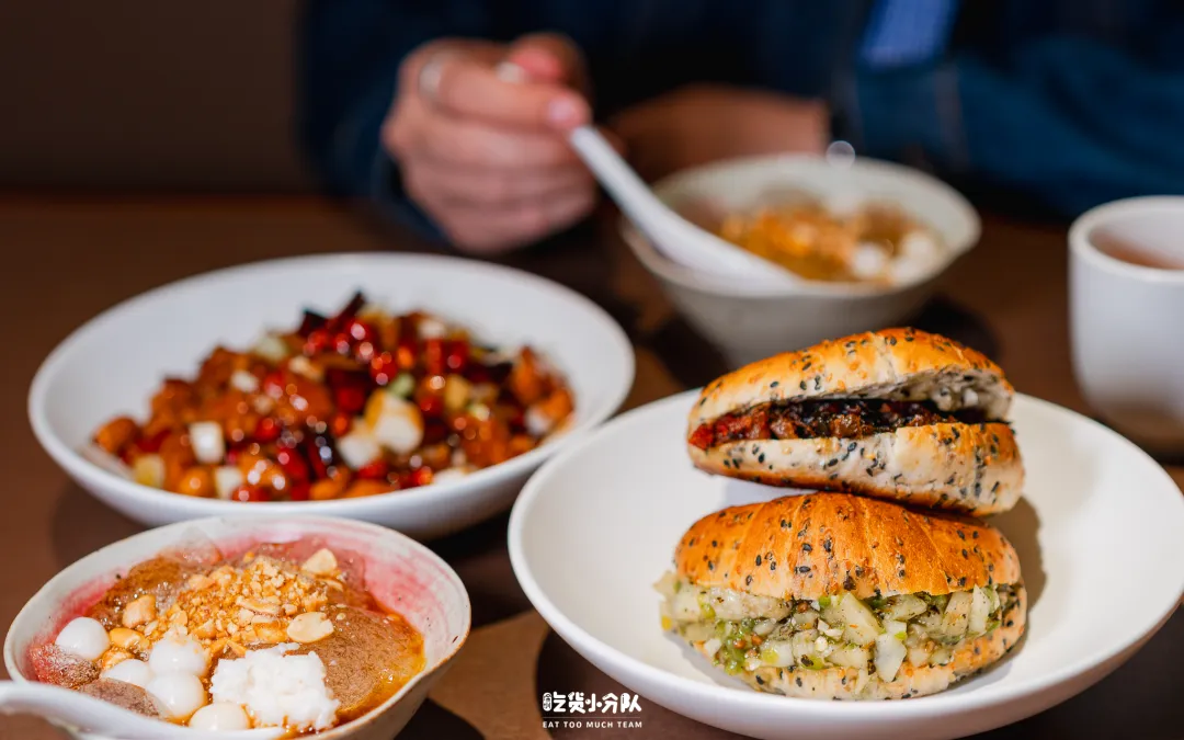 又一家和川菜馆的联名,是JPG和米其林川菜馆“马旺子”,推出多款餐食饮品和周边。其中,最有创意的要数这个“马年旺旺包”,将JPG招牌的菠萝包改良,内馅换成川味腊肠和红油辣子,黄油的焦香和辣子的香气富有层次,吃起来非常上头。