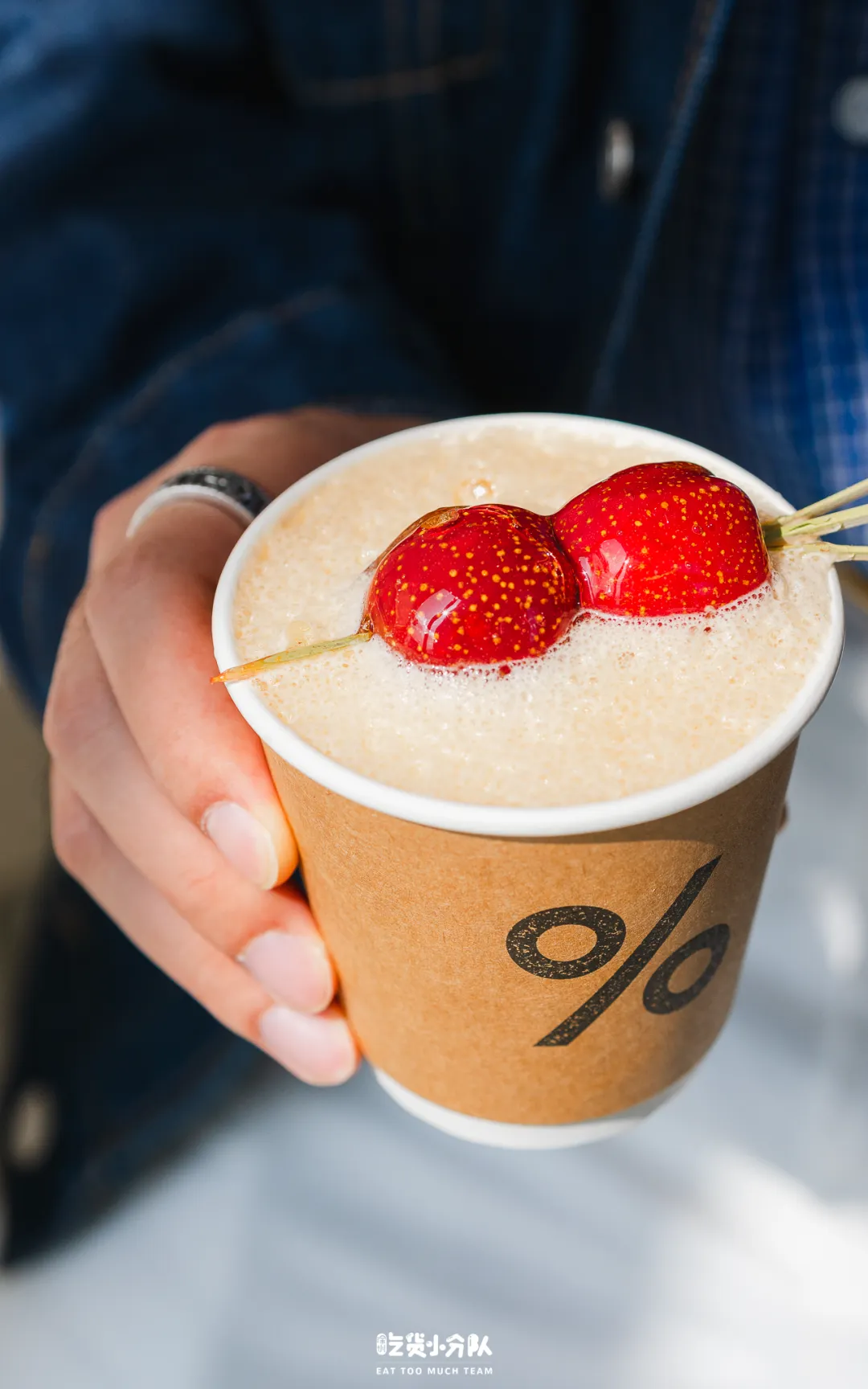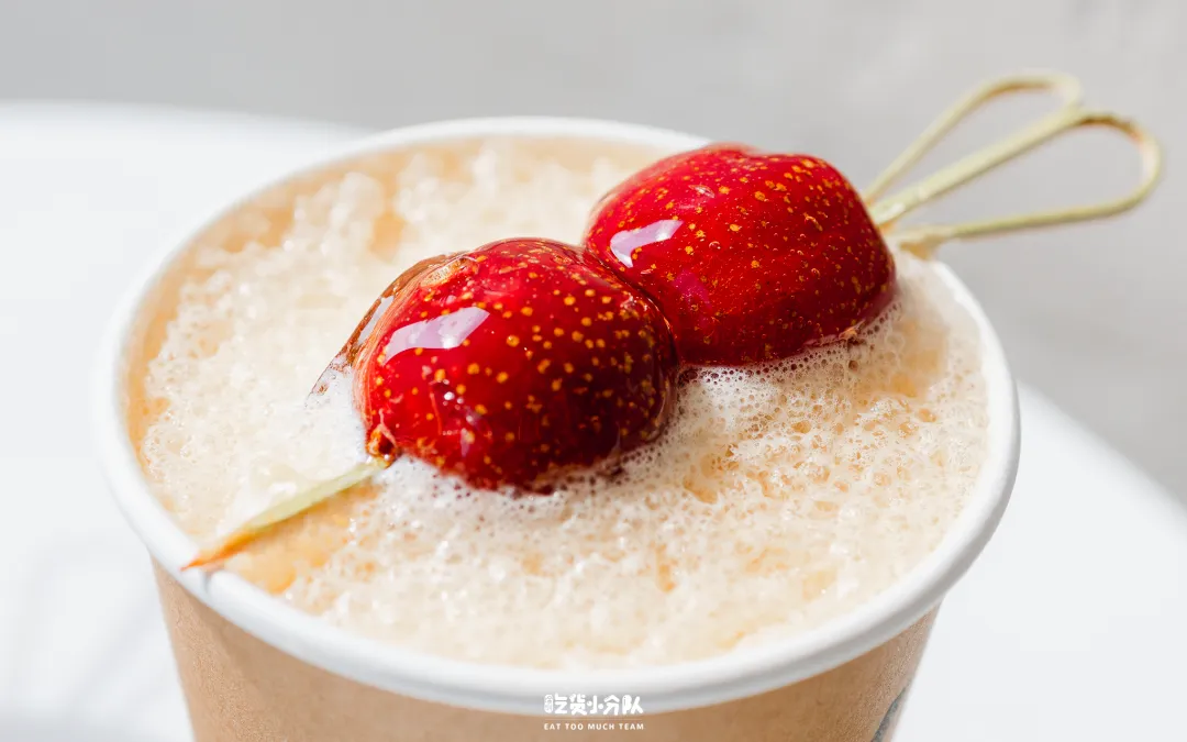 阿拉比卡这杯年味超浓的咖啡,目测要成为新年的街拍利器了。顶部是一串冷冻的糖葫芦,咬开内里是酸度很高的山楂,先吃糖葫芦,再喝美式,更能感受到下面的山楂美式的咖啡香,回味是山楂的酸,推荐选冷饮。