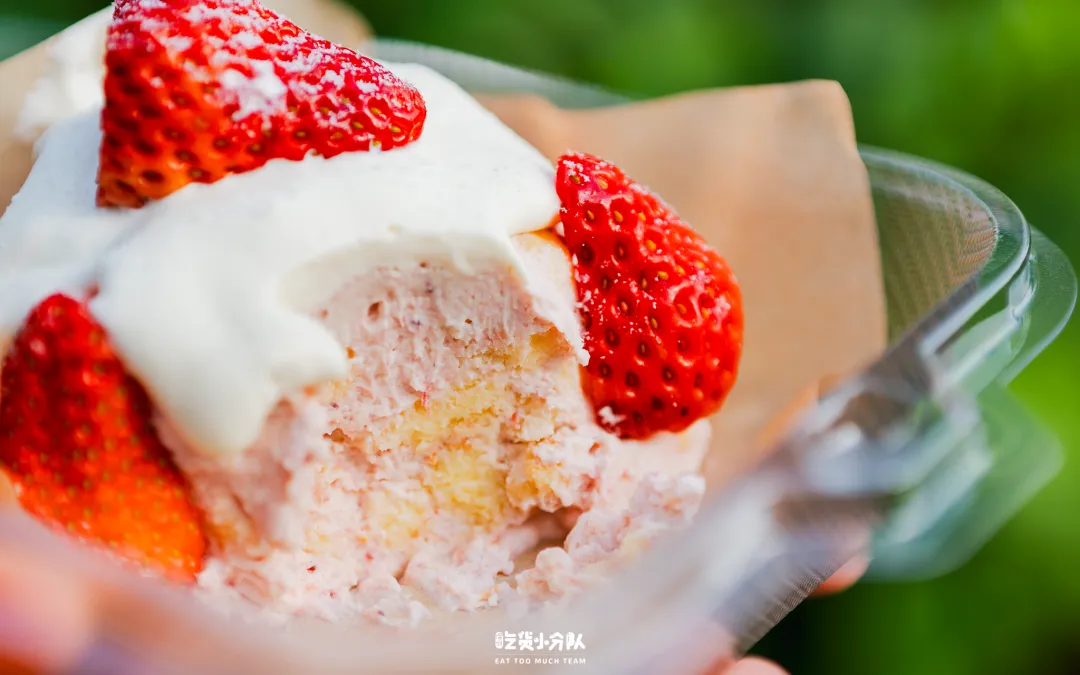 鲍师傅上新了超大尺寸的奶贝,搭配丰富的草莓和奶油雪顶,堆成一座“小山”。整体吃起来不甜,中间是草莓酱和奶油糊糊,搭配奶贝蛋糕,个头大约是正常奶贝的3倍多,蛋糕体软乎乎的,搭配奶油和草莓,就是很传统的草莓蛋糕味。