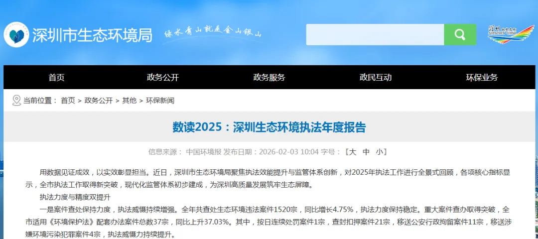 数据的背后,是监管理念的持续升级,是执法方式的智慧转型,更是生态守护的责任践行。2025年,深圳生态环境执法工作以数据驱动监管,以科技赋能执法,以服务优化环境,逐步构建起与现代环境治理体系相适应的执法新模式。面向未来,深圳市将继续深化执法改革创新,推动生态环境执法向更高水平迈进,为建设美丽中国贡献更多“深圳经验”。