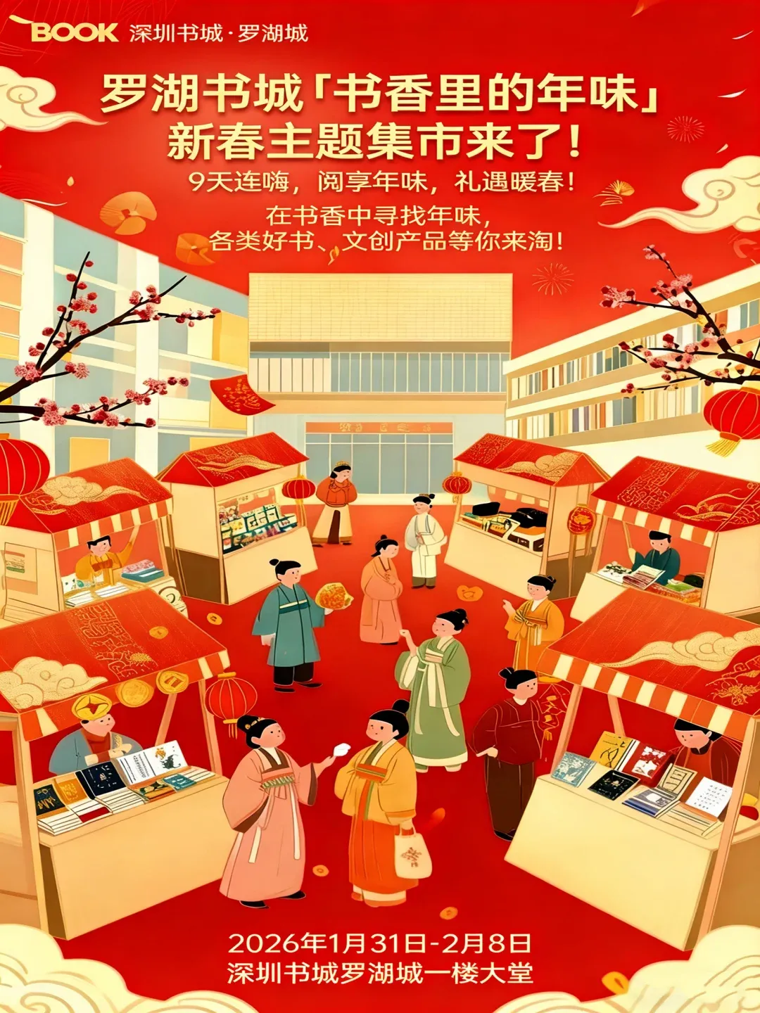 ✨亮点:有各类好书、文创产品、新春好礼、手作饰品、特色年货等,10 + 个特色摊位,还有趣味互动活动