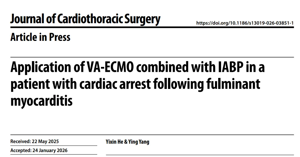 2026北京大学深圳医院急诊科杨莹教授团队 | VA-ECMO联合IABP成功救治爆发性心肌炎心脏骤停患者的临床启示与决策思考
