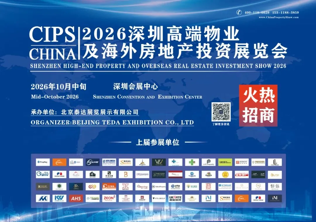 由北京泰达展览展示有限公司承办的2026深圳高端物业及海外房地产投资展览会拟于2026年10月中旬在深圳会展中心(福田)举办,预计迎来中国香港、新加坡、马来西亚、越南、菲律宾、泰国、印度尼西亚、柬埔寨、韩国、塞浦路斯、马耳他、希腊、土耳其、美国、加拿大、澳大利亚、英国、西班牙、迪拜、德国、荷兰等26个国家和地区的近300个境内外项目参展参会。展示内容丰富涵盖高端房产、海外置业、投资移民、国际教育、游学留学、企业出海、税务筹划、家办信托、出国医疗、高端物业等板块,旨在打造全球化资产配置及教育留学一站式服务平台,与此同时,展会现场还将举办“CIPS海外房地产投资及教育留学大讲堂”活动,推出分别以中国香港、新加坡、马来西亚、美国、欧盟、加拿大、英国等热点国家和地区的多场专题讲座。