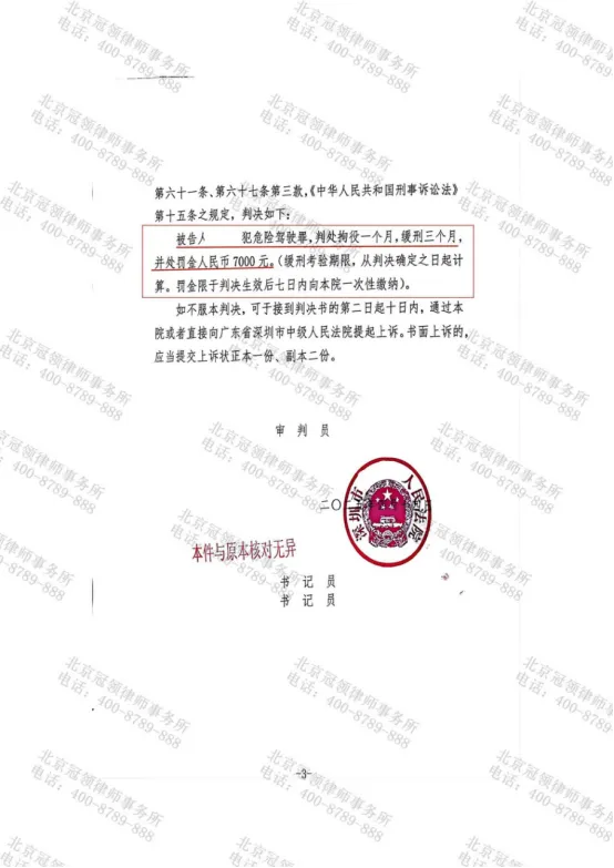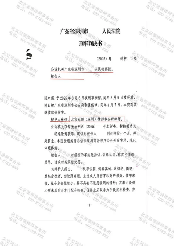 2025年4月,广东省深圳市光明区人民法院通过庭审程序审结一起危险驾驶案件。袁忠远(化名)因酒后驾车逃避检查被检察院提起公诉,在冠领律师的辩护下,法院采纳辩护意见,判处拘役一个月,缓刑三个月,并处罚金7000元。