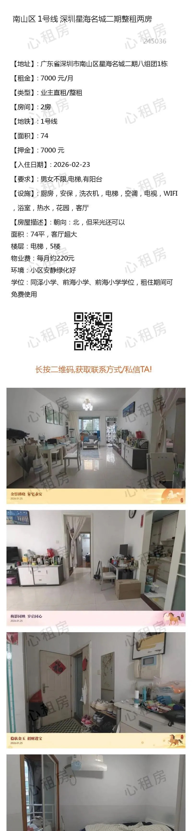7、近期有人冒充我团线下工作人员,在此特别提醒:本公众号/心租房(homhere.cn)仅提供信息发布,不存在线下工作人员提供服务,请务必谨慎、切勿上当被骗。8、切勿轻信他人,点击他人提供的链接、二维码等,切勿按照他人指示提供验证码、进行转账等操作,谨防上当受骗。9、如遇提供虚假信息、冒充我团工作人员、引诱点击其他网站链接、实施诈骗等行为的,请及时在本公众号对话框里回复:Y,与我团客服联系。 查看不同房源→→深圳心租房公众号