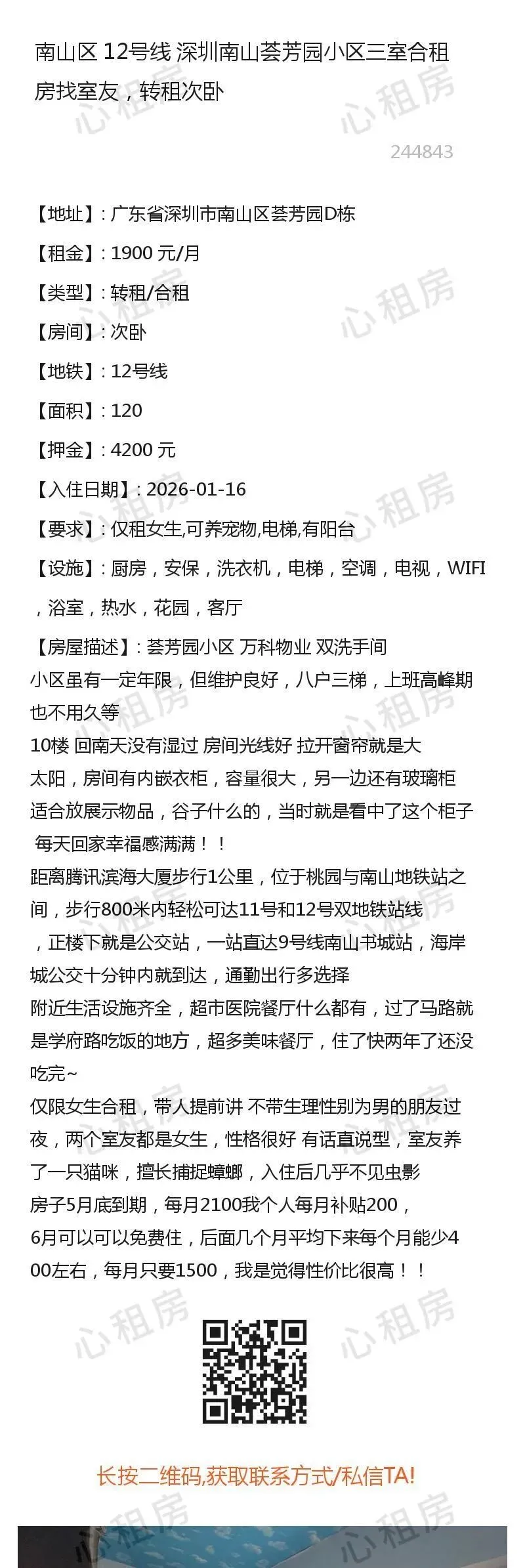 深圳租房黑房东找房子罗湖合找室友合租短租深租房科技园深大豆瓣南山租房地铁租房龙华新福田罗湖光明新区坪山新区大鹏南山豆瓣1、所有房源信息均由网友投稿,委托本公众号/心租房(homhere.cn)发布,房源的真实性、合法性由提供者负责。2、请务必核实双方身份信息(身份证)、房产权属(产权证明)、转租权利(租赁合同)等基本信息。3、请务必实地考察房源并确保与出租方提供的基本信息一致。4、切勿轻易支付定金、保证金、打赏等,建议签订《租赁合同》后再进行交易。5、双方在房屋租赁过程中产生的一切纠纷,均与本公众号/心租房(homhere.cn)无关。6、近期欺诈团伙在境外以相亲交友、租房、国际包裹等名义实施杀猪盘、诱导下载未知app等进行刷单返利等欺诈的行为较多,请先确认对方身份,保护个人隐私和财产安全。