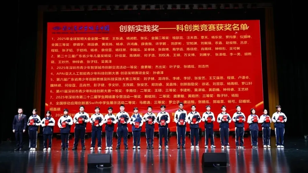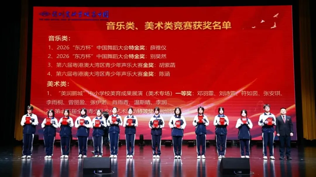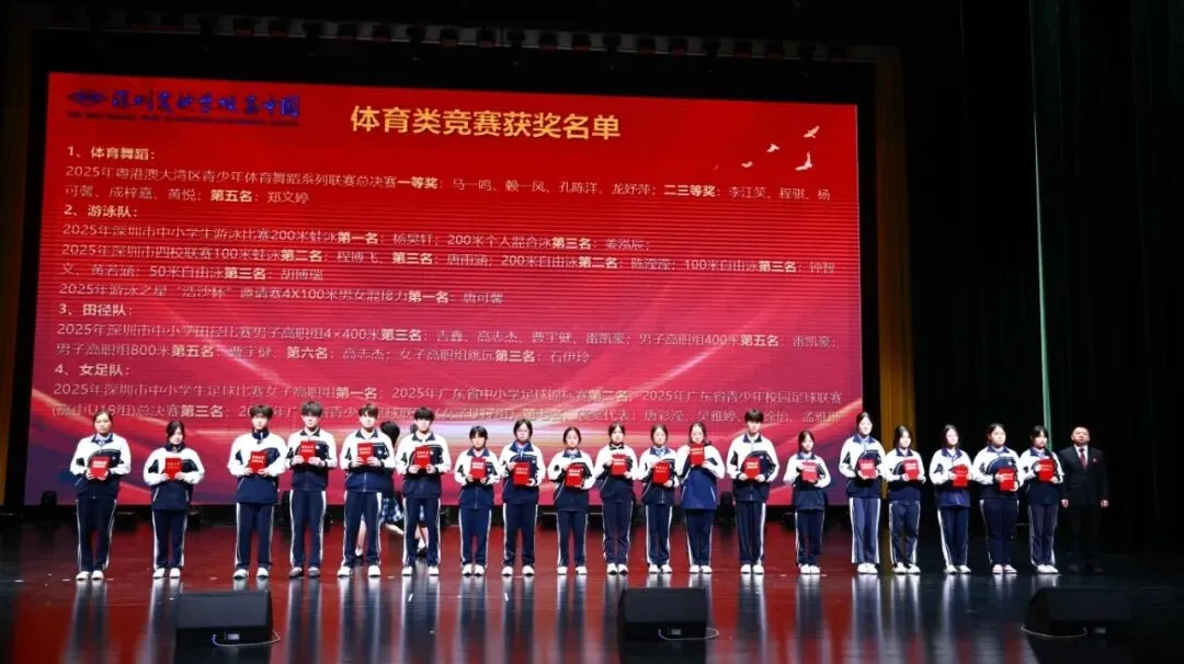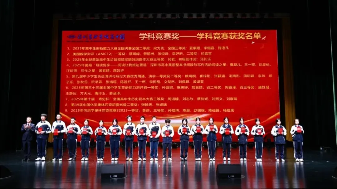 李校从“聚焦德育铸魂,筑牢学生精神底色”“聚力师资强基,激发教育内生动力”和“聚能课程创新,拓宽学生成长赛道”三大维度,全面总结了本学期的教育教学工作。他特别肯定了在“1+N”五阶课程体系下,模块分类课程、素养活动课程、社团建设及创新拔尖课程方面取得的丰硕成果,包括学子们在五大学科竞赛、人文素养赛事、科技创新类赛事中累计获得的数百项国家级、省市级奖项。这些成绩,正是实验学子“骏马奔腾”般青春活力的生动写照,彰显了深圳实验教育品牌在时代浪潮中的强劲势头。