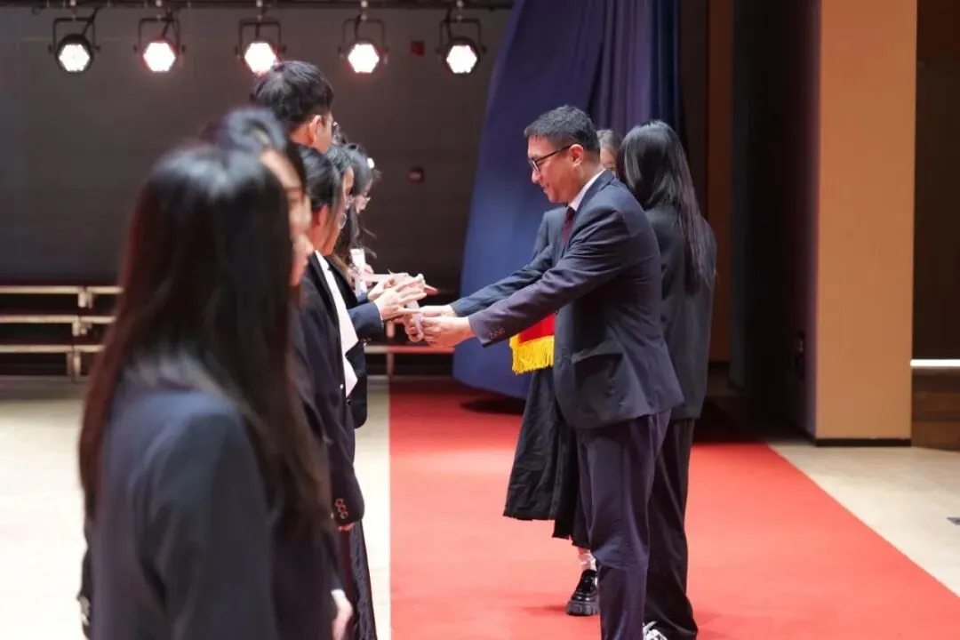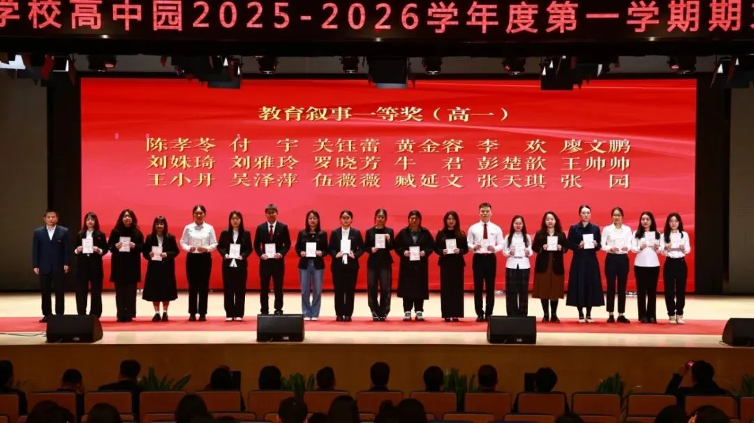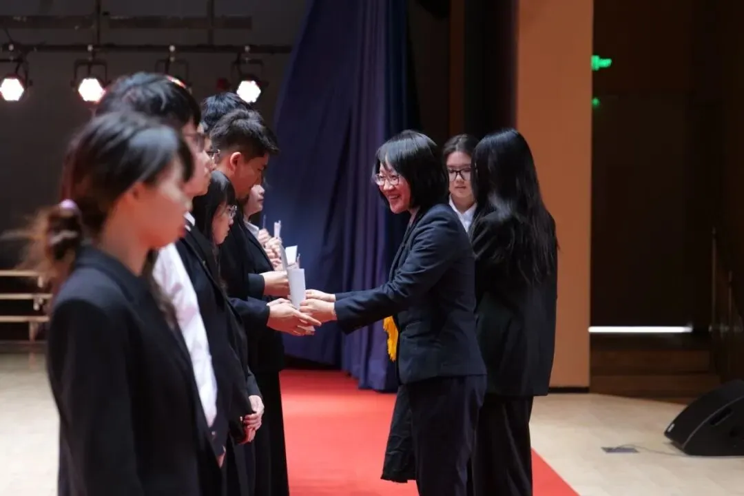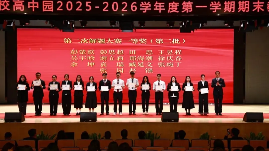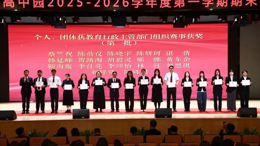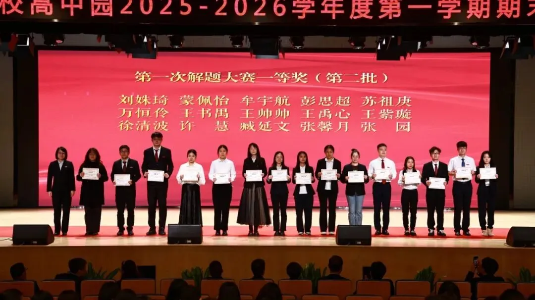 在激昂的颁奖乐中,获奖代表依次登台,从园区领导手中接过承载着肯定与期望的荣誉证书。他们的风采,是对“骐骥一跃,志在千里”的最佳诠释,激励着全体同学在新的一年里,继续扬鞭奋蹄,竞相奔腾。