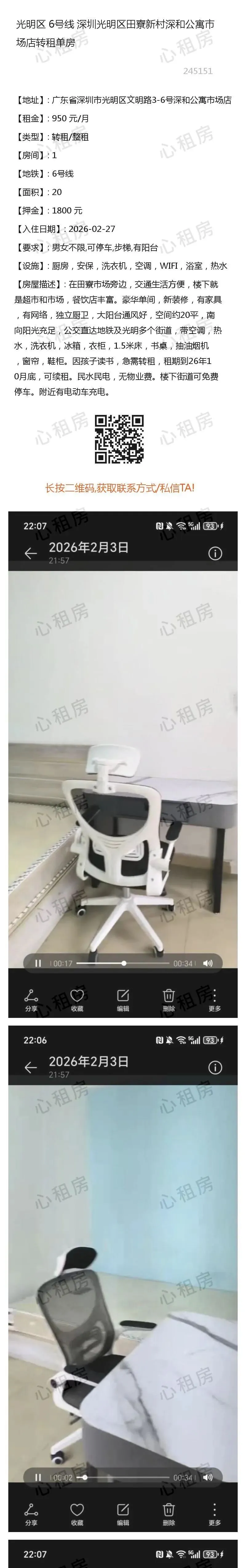 查看不同房源→→深圳心租房公众号