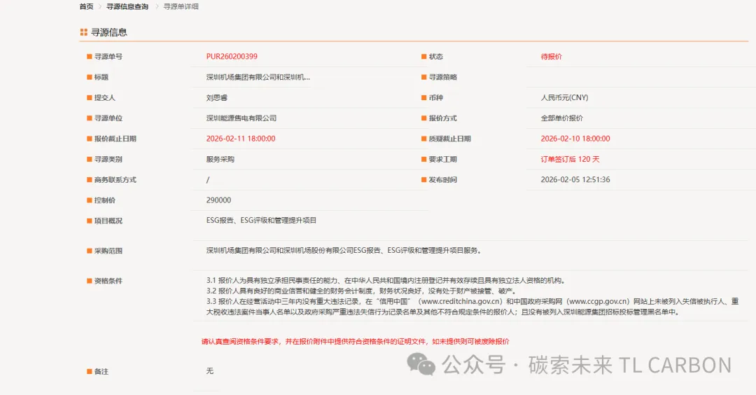 标段名称:PUR260200399/深圳机场集团有限公司和深圳机场股份有限公司ESG报告、ESG评级和管理提升项目