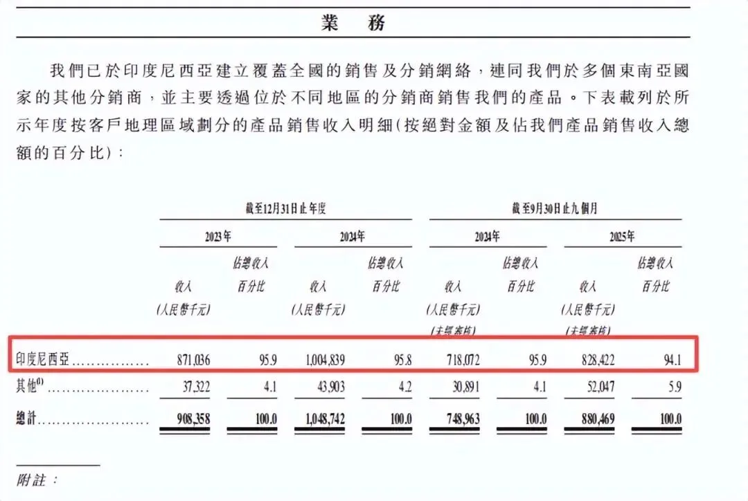 此外,公司收入高度依赖印尼市场(2025年前九月占比94.1%),受当地监管、宏观经济变动影响较大。