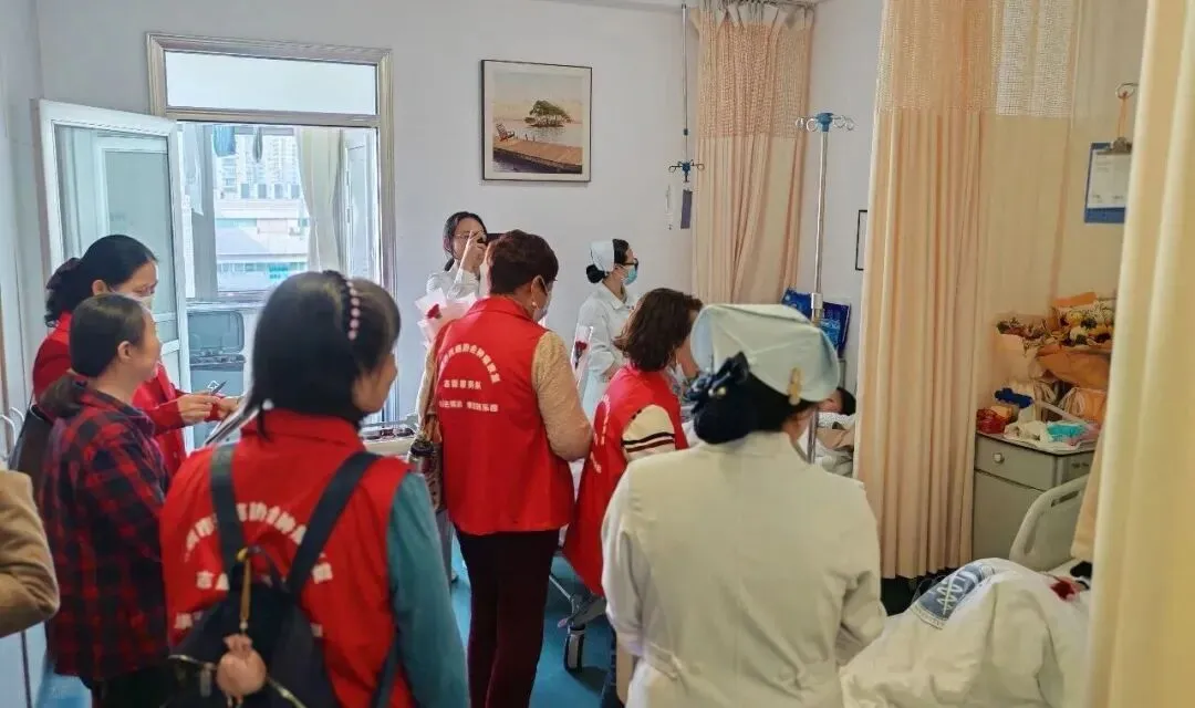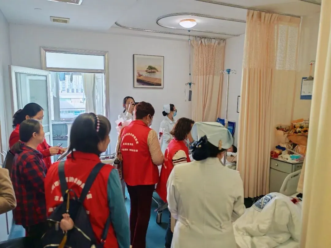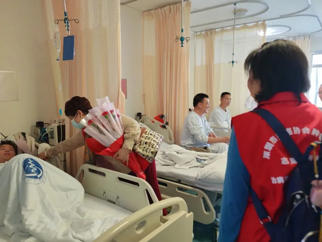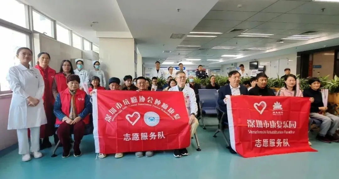 相信只要我们携手并肩,就一定能战胜癌症!” 三位抗癌明星的分享朴实而真挚,让现场不少患者及家属深受触动,纷纷表示 “看到了希望,更有信心面对未来的治疗之路”。全体参与人员共同合影留念,镜头定格下一张张充满笑容的脸庞,也记录下这场充满爱与希望的公益之约。深圳市抗癌协会肿瘤康复志愿服务队的志愿者们带着满满的关怀走进病房。他们与未能到场的患者亲切交流,分享活动中的精彩瞬间和实用的康复知识,送上慰问与祝福,用陪伴驱散患者的孤独感,让他们感受到来自社会的关爱与温暖。“医患携手,迎春而行 ——2026 年世界癌症日公益行” 活动圆满落幕。本次活动将科普知识、爱心陪伴与康复经验完美融合,既为患者及家属提供了专业的医疗指导,也传递了浓浓的人文关怀。未来,北京大学深圳医院胸外科将继续携手深圳市抗癌协会癌症康复会、深圳康复乐园等单位,持续开展各类公益活动,搭建医患沟通、患者互助的桥梁,以专业的医疗技术和温暖的人文关怀,助力更多肿瘤患者走向康复,让抗癌之路不再孤单。专注肿瘤康复20多年,