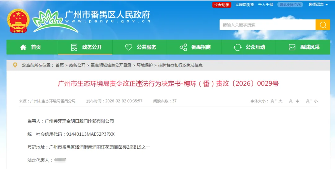 据悉,该责令改正违法行为决定书由广州市生态环境局于2026年1月30日正式作出,相关整改及后续处理情况将持续受到监管。