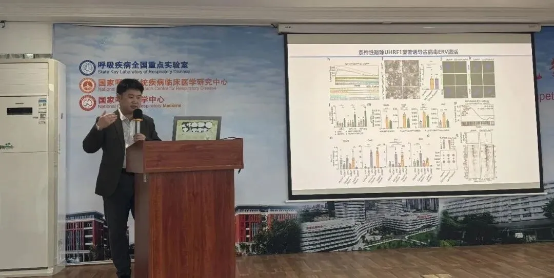 在本次讲座中,陈善泽副研究员主要围绕呼吸慢病的发病机制、动物模型构建及多组学技术应用展开讨论,并重点以“古病毒(ERV)是否在肺组织驻留巨噬细胞中扮演重要作用”这一科学问题展开分享了团队在肺泡巨噬细胞调控、肺纤维化模型等领域的科研进展与技术平台建设。他表示,ERV随肺泡巨噬细胞的发育而沉默,在这一过程中,ERV的沉默涉及多种表观遗传机制,包括DNA甲基化和组蛋白修饰。ERV的沉默有助于维持肺泡巨噬细胞的正常功能,未沉默的ERV可能会导致细胞异常活化,引发炎症反应或其他病理状态。