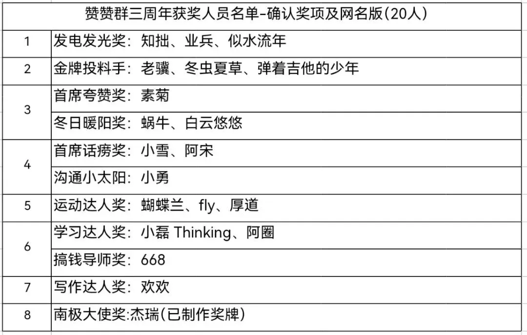 还有老骥、浮生、辉辉、小勇,阿宋,柔柔,业兵,厚道姐,云姐,兔子,TY,阿圈,小雪……等等,为了这次三周年纪念活动付出辛苦的伙伴们。是你们,让我们的群更有温度,更有爱。