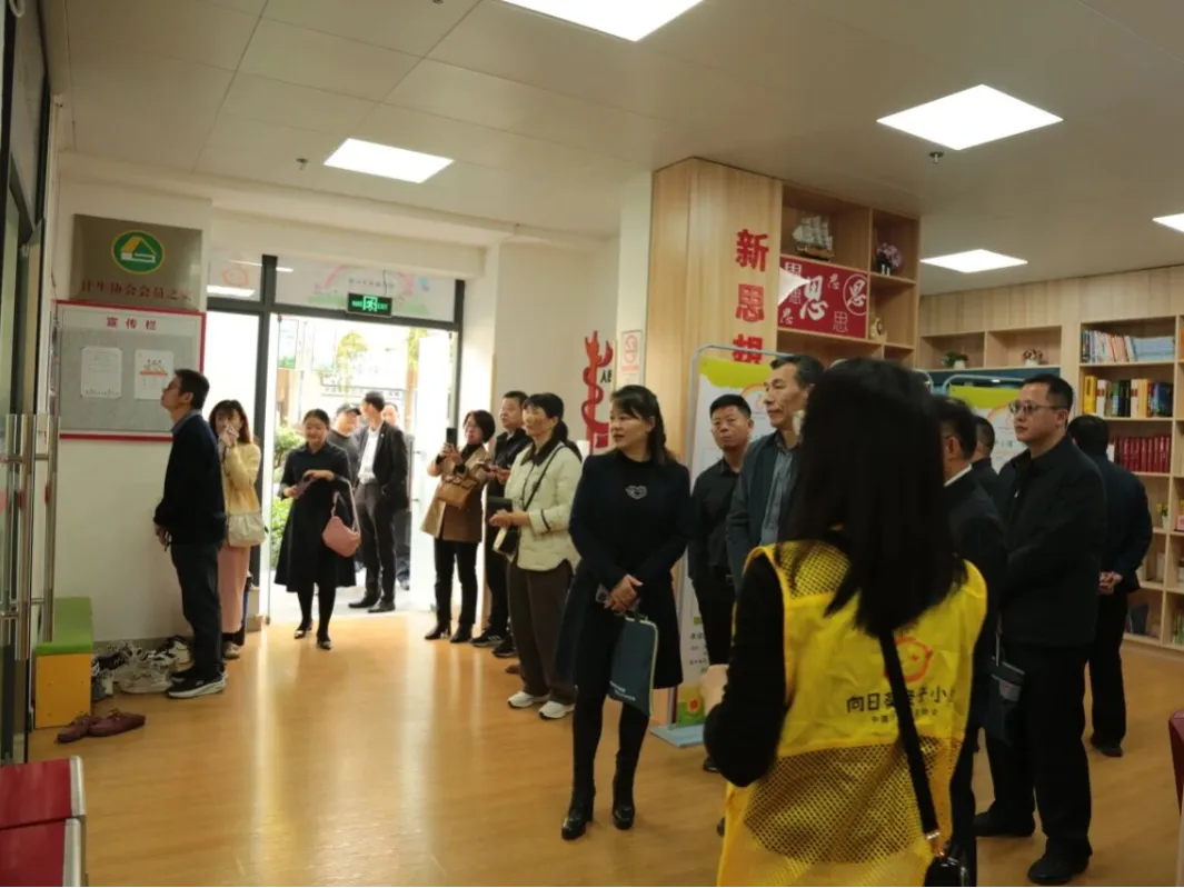 在实地参观环节,全体参会人员赴广东省外语艺术职业技术学院青春健康俱乐部、黄埔区文冲和黄埔两个街道“向日葵亲子小屋”项目点现场调研。