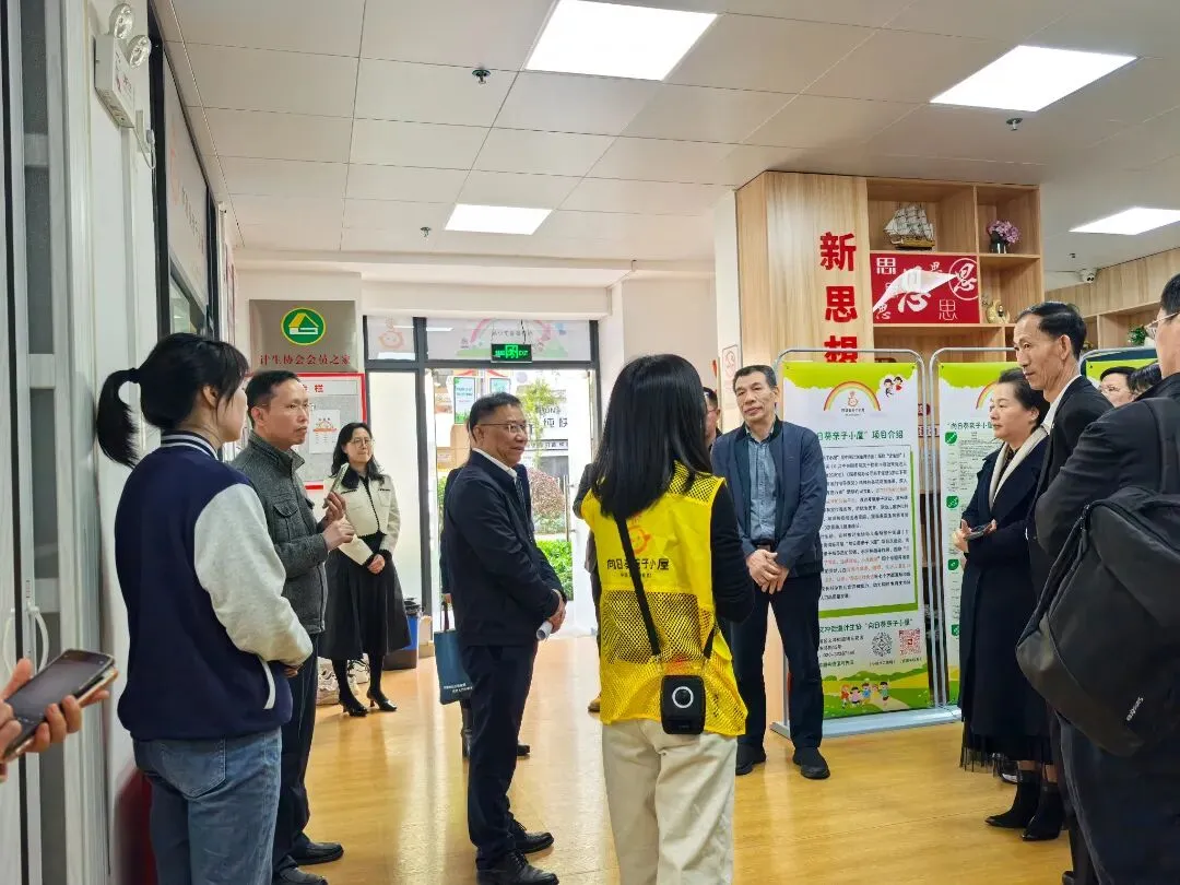 黄埔区文冲街瑞东花园“向日葵亲子小屋”:与会人员实地了解其“线下阵地+线上平台”融合服务模式。该亲子小屋围绕亲子活动、家长课堂、长辈学堂等开展服务,同时通过平台建立“互助带娃”“共享家长”等机制。通过“服务—积分—兑换”互助闭环和智能监管体系,形成可持续的社区托育生态。项目以“育儿互助”不仅有效缓解家庭育儿压力,还推动形成老年群体参与、邻里信任增强、社区共建共治的基层治理新格局,为婴幼儿照护服务提供了社区实践样本。