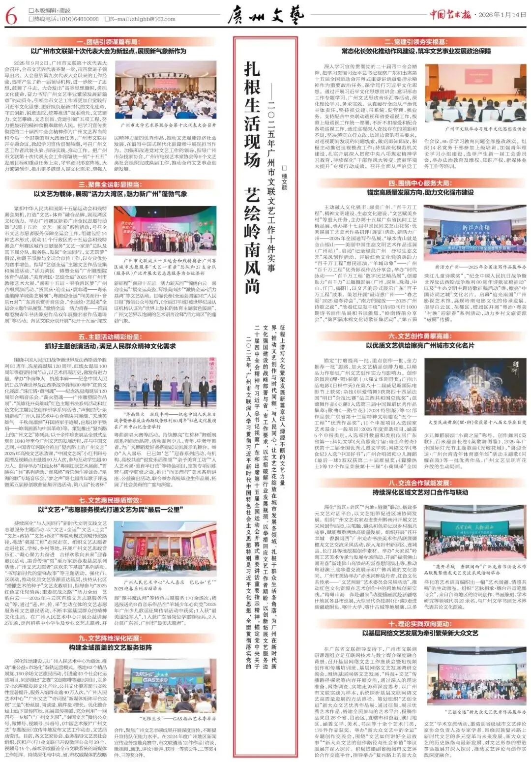 1月14日,《中国艺术报》专版刊发《扎根生活现场 艺绘岭南风尚——2025年广州市文联文艺工作十件实事》。
