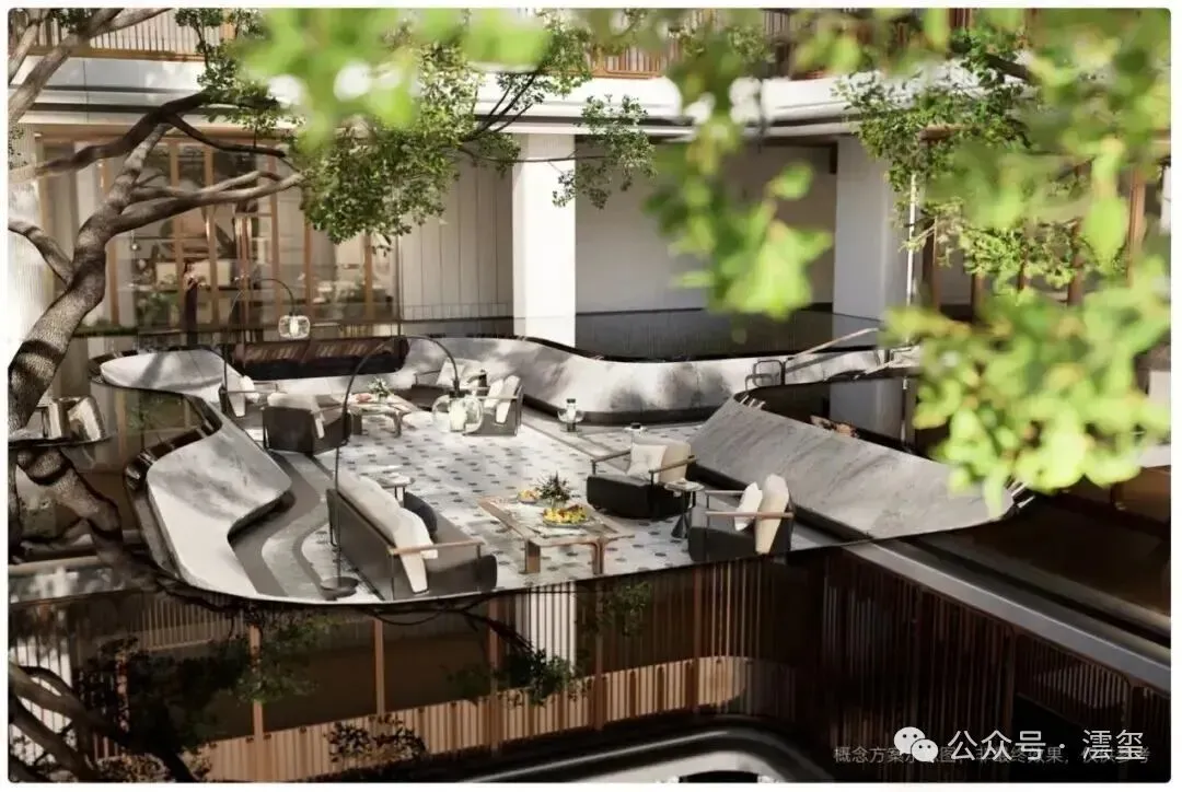 将原本地面生长的乔木、植被延伸至负二层,让地下空间拥有了穿透地面生长的空间,通过光影、材质与动线控制,营造出城市中心的宁静疗愈场。