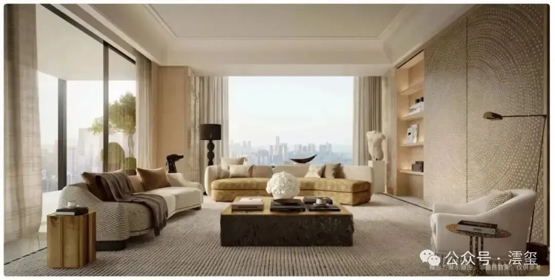这笔巨资并未用于打造张扬的浮华表象,而是深度转化为对建筑肌理、声学环境、空间尺度与生活方式的精研打磨。从建筑轮廓、立面肌理到社区园林、产品细节,项目以全维度视野汇聚全球顶尖设计力量——KPF、Line+、翊象、傅厚民、渡边、无间、于舍、CCD、丹健、李益中等团队的智慧在此交融,既传承传统东方的奢华意蕴,又融入当代西方的艺术美学。