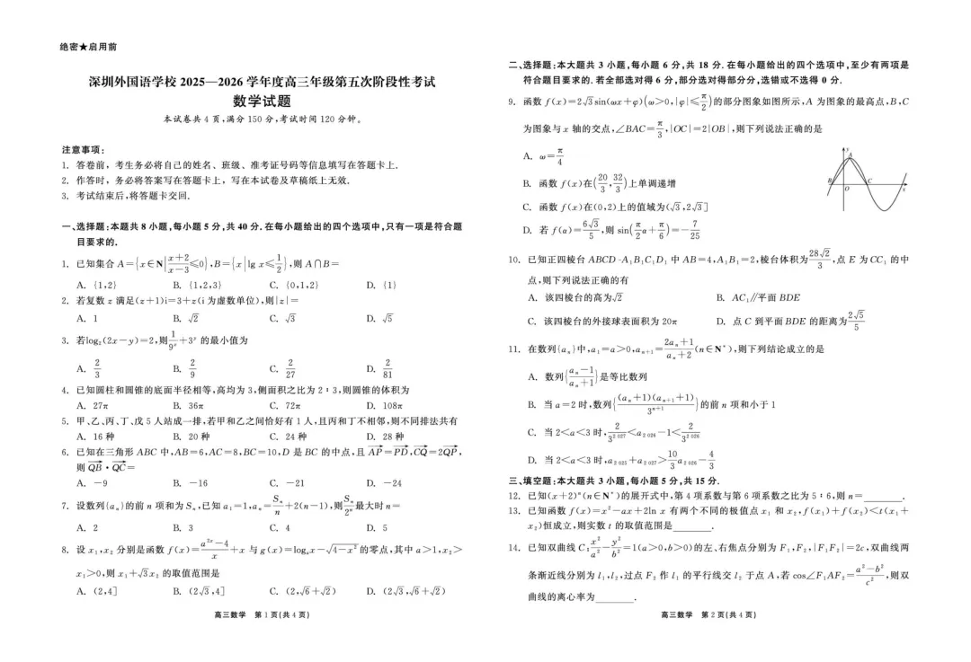 作者寄语:深圳外国语学校2026届高三第五次阶段考试数学试题+答案,7天有效领取,手慢无!!!