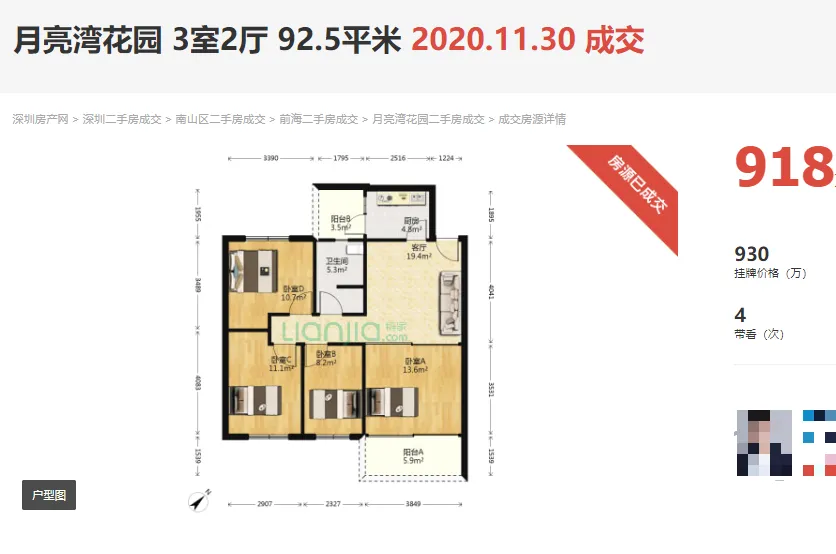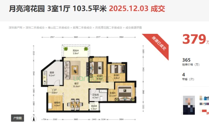 大家看这是深圳楼市的月亮湾小区,巅峰时期92平的能卖到918万,现在103平的也只能卖到379万了,这里面的价格是腰斩了,那么谁如果真的觉得深圳房价能再创新高,去把这个小区房子一买,后面房价一涨,也就实现财务自由了。