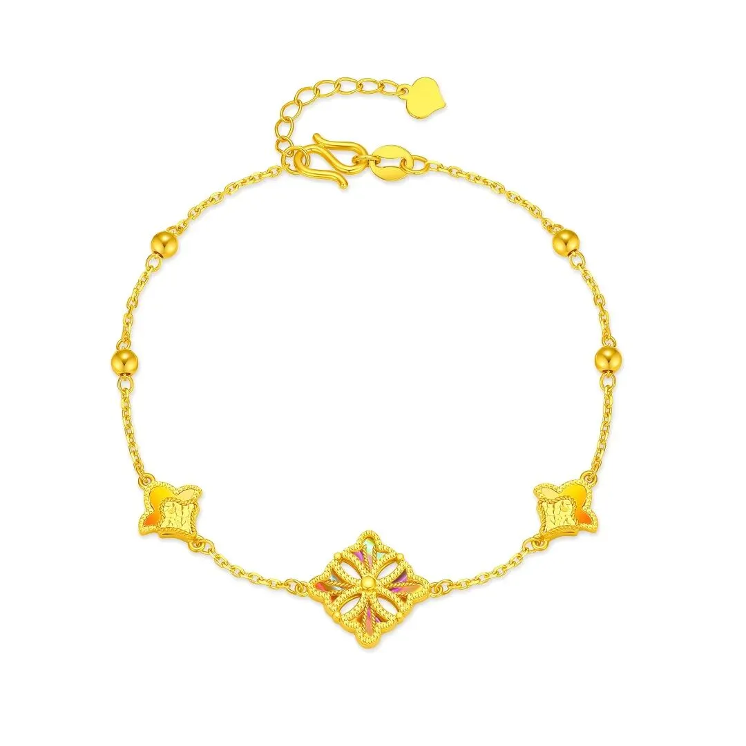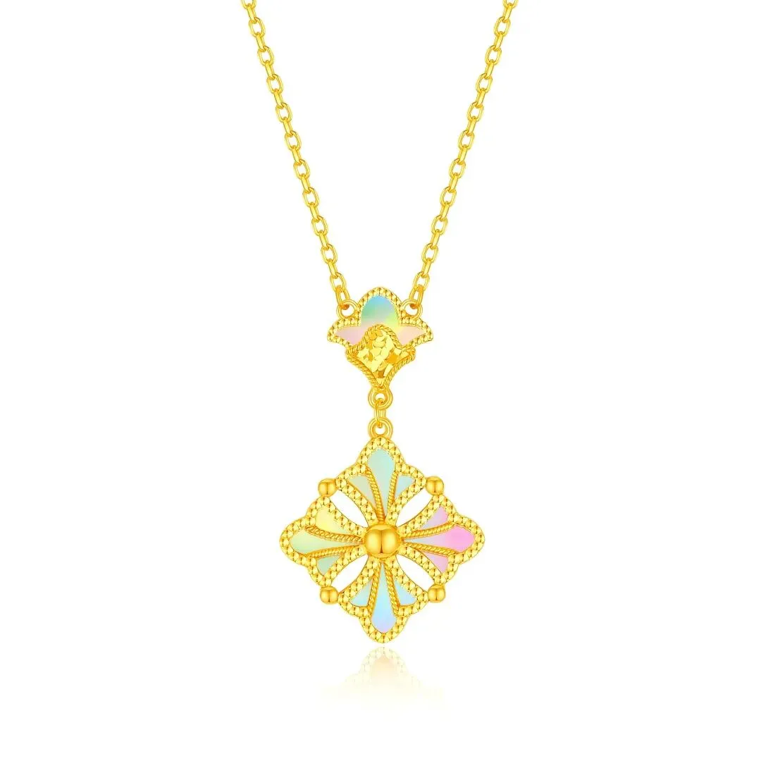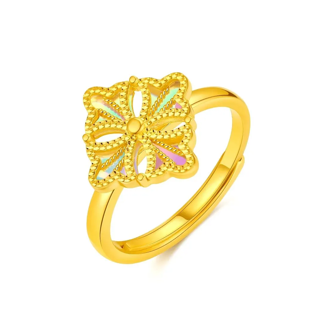 极光工艺:运用精密 CNC 炫彩技术,在瓣面雕刻多维折射面,并结合渐变切削与镜面抛光,使黄金表面折射出随光而动的梦幻极光幻影;