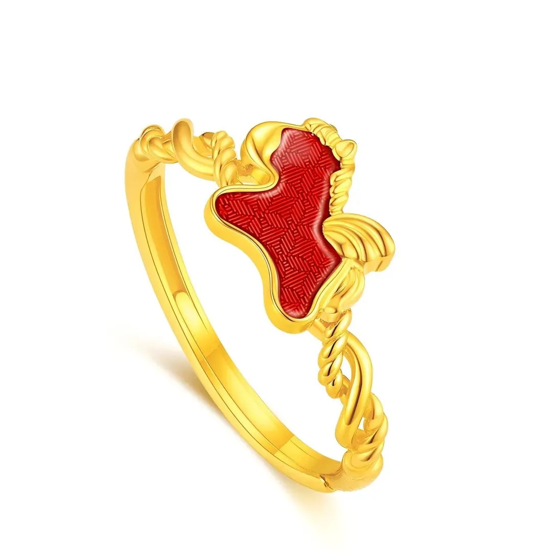玑镂珐琅:(红色款)于黄金表面錾刻精密几何底纹并覆以清透釉彩。光影在底纹与珐琅间交织律动,使招财纹样呈现出如丝缎般流转的视觉美感,极具艺术灵性。