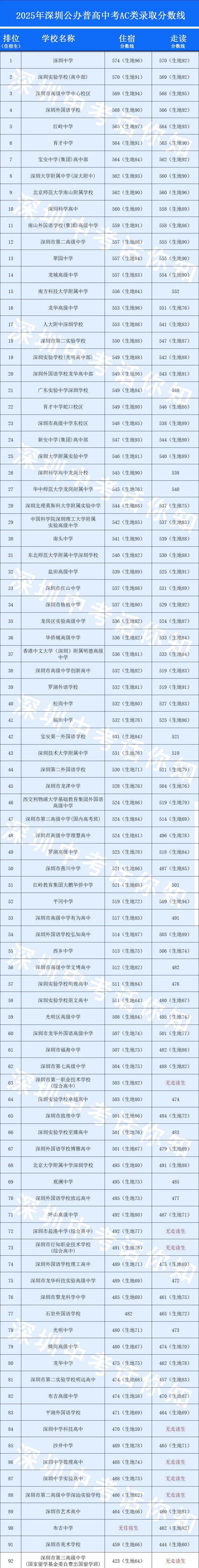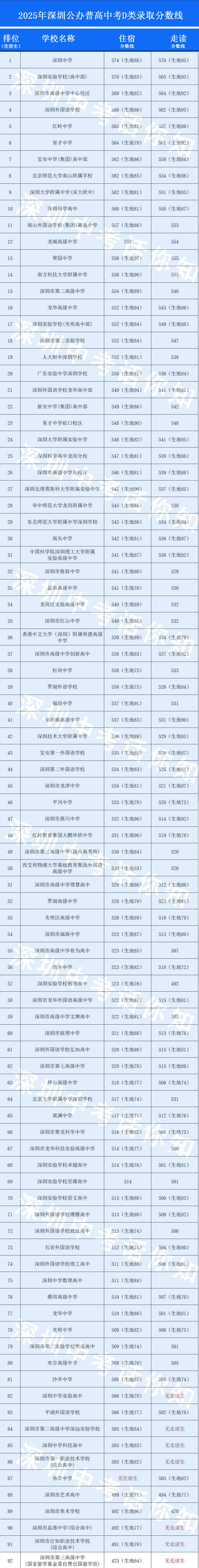 2、25年深圳中考有住宿和走读两个分数线。