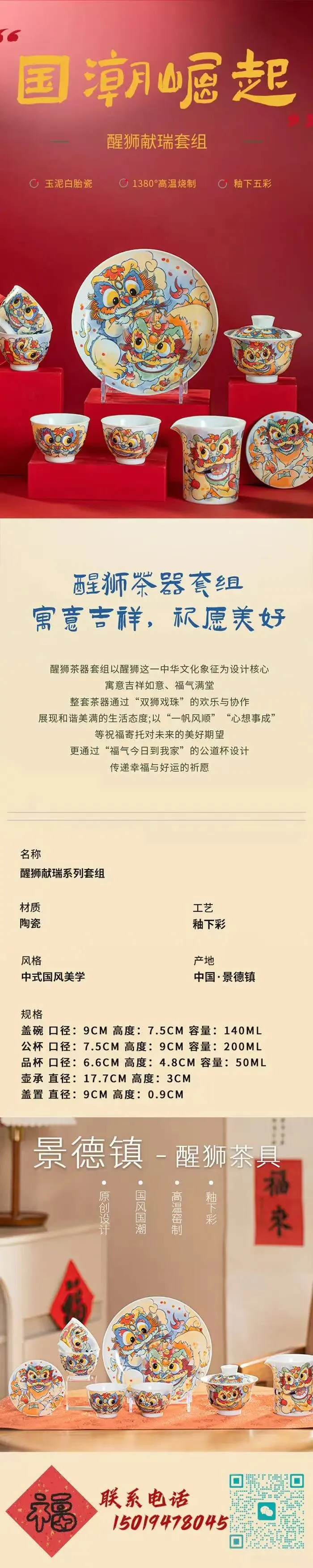 来自景德镇的匠心之作,以 “醒狮献瑞” 为设计灵感,把千年瓷都的工艺和岭南醒狮的喜庆融为一体。