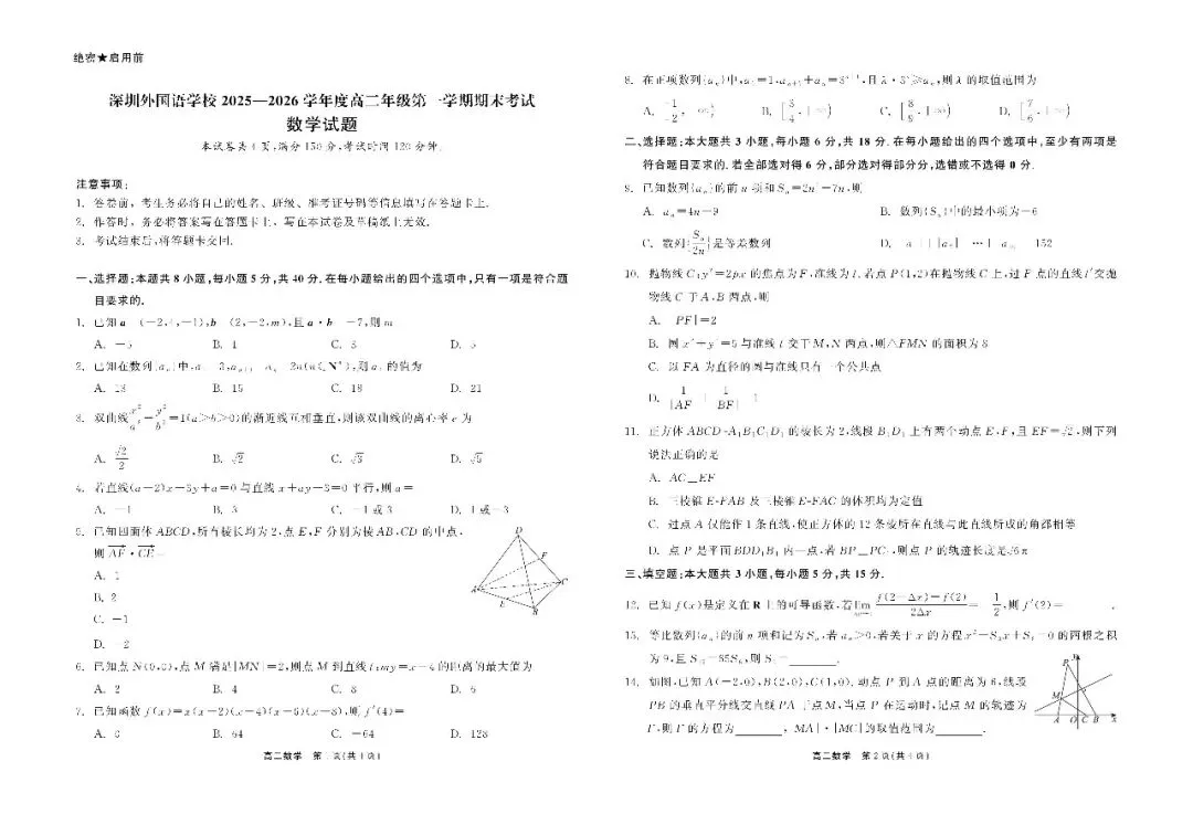 >广东深圳外国语2025-2026学年高二1月期末数学试题
