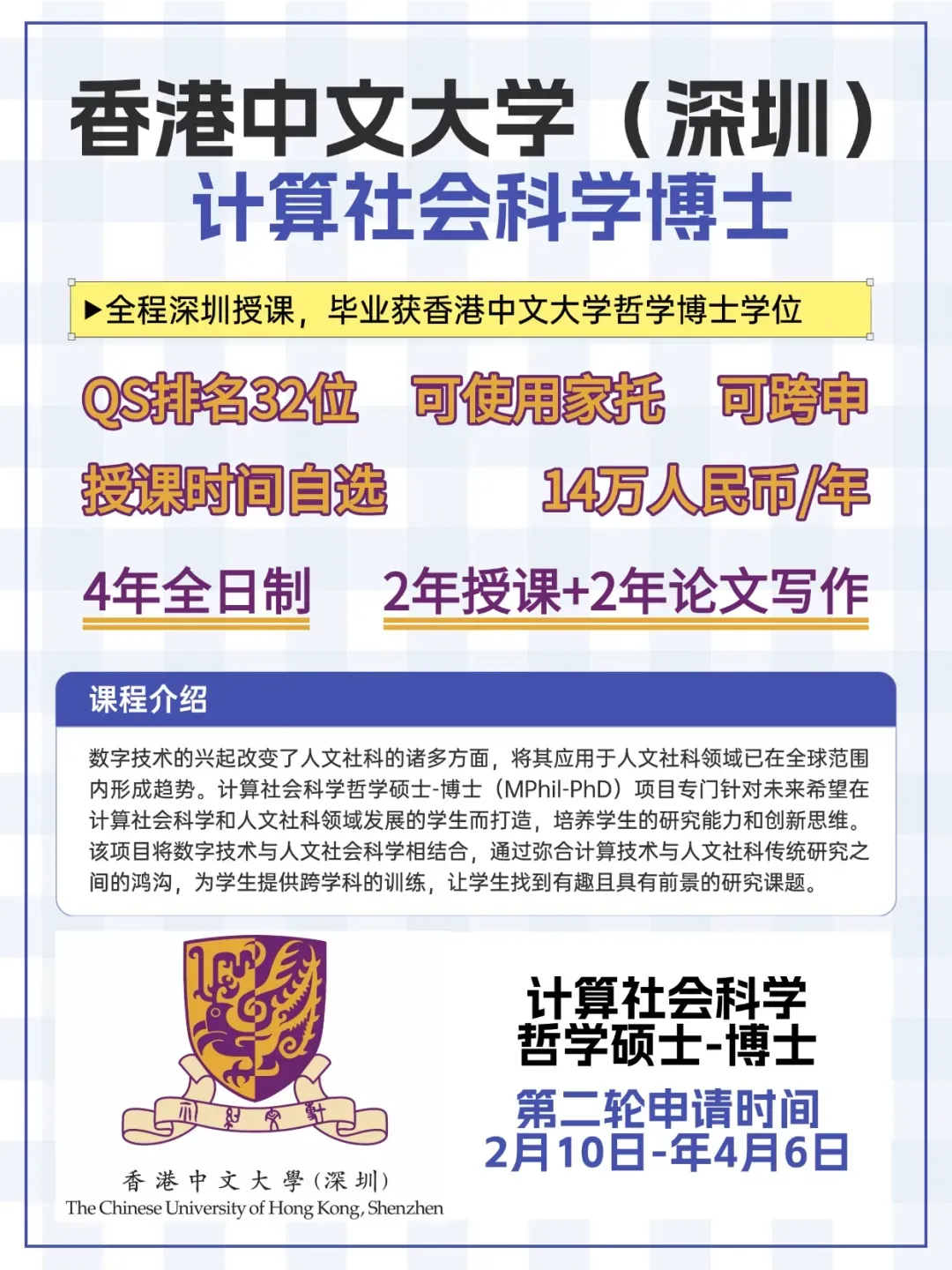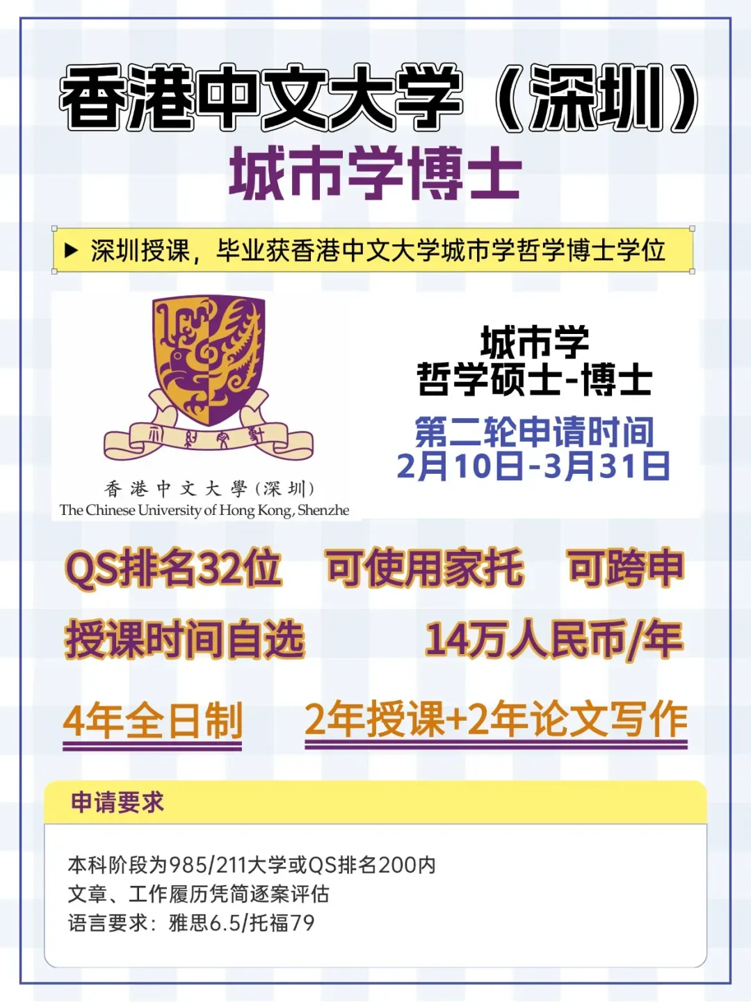 当前位置:首页>深圳>香港中文大学(深圳)2026/27年度博士项目招生简章!可跨专业申请,支持家庭托福,中留服认证
