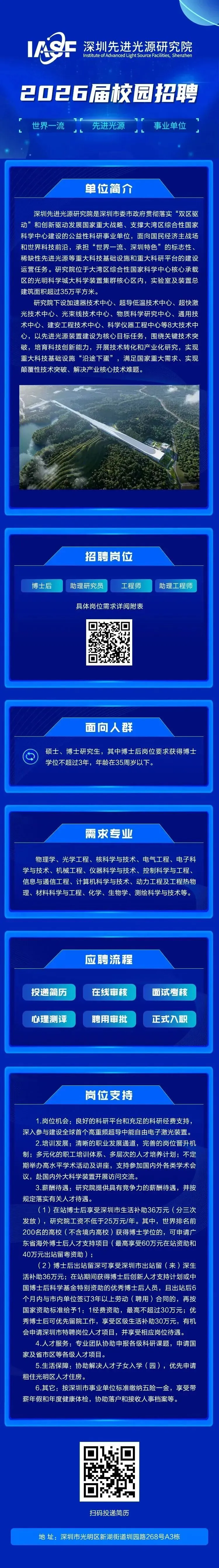 招聘 | 深圳先进光源研究院2026届校园招聘