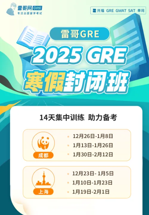 🎓 抓住假期,自由时间,正是备考GRE的绝佳机会!📚 雷哥GRE,每年寒暑假,特别策划封闭面授班,线下短期集中训练,助你高效冲刺目标分!
