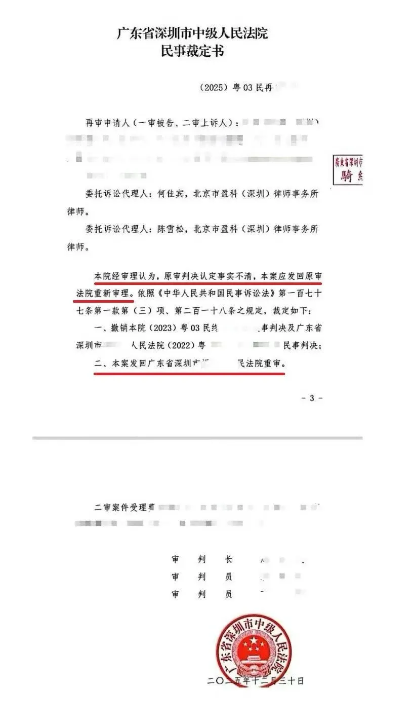 导读:🚨 天价赔偿案反转!律师漏交5元诉讼费,被判赔147万后,案件发回重审!深圳中院的民事裁定书显示:本院经审理认为,原审判决认定事实不清,本案应发回原审法院重新审理。故裁定撤销原判,发回重审。值得注意的是,再审法院和原审法院,都是同一个法院,并非上下级。同级法院之间启动再审,尤为难得,律师们都懂。