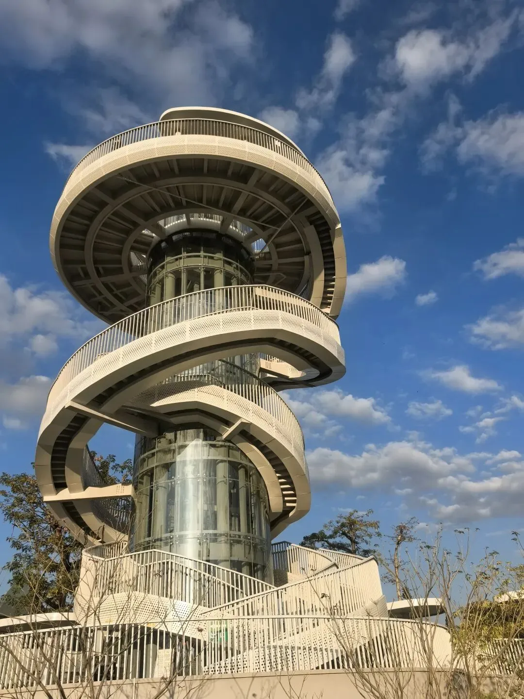 游玩亮点:这座19.5米高的螺旋塔是罗湖新地标,设计灵感源于“天际流云”。