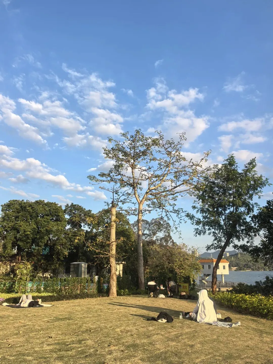 塔下,是脚踏实地的生活——人们在草坪上野餐,