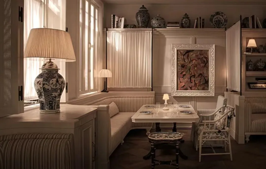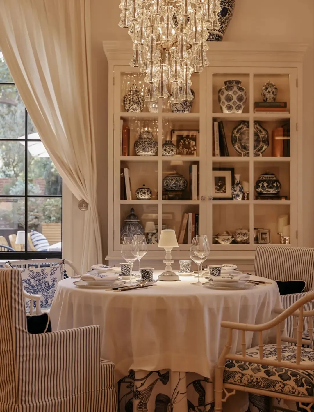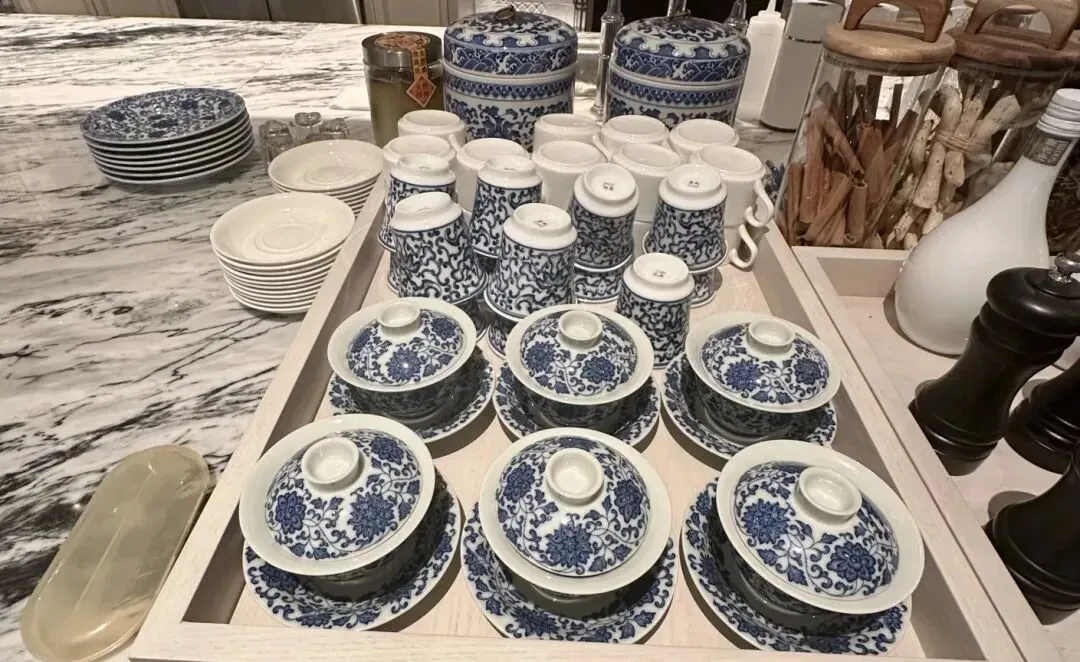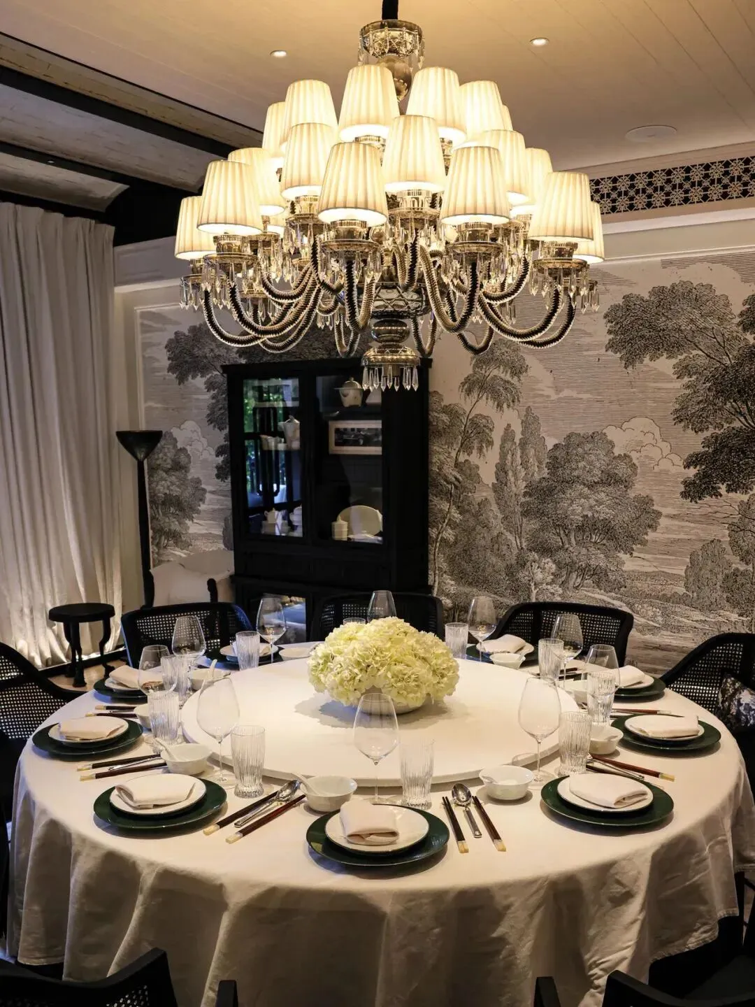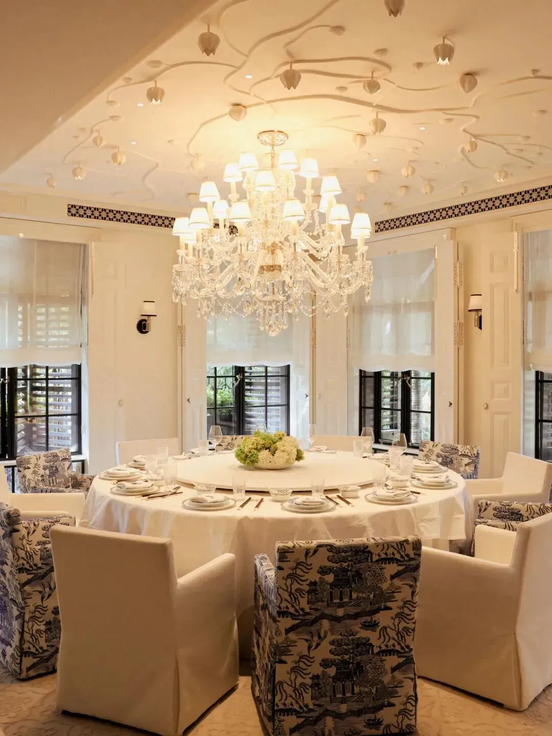 以中国代表性瓷艺——青花瓷为主线,放眼望去,陈设、餐具,都充满了“青花瓷”元素。法式风情与青花瓷、中西美学、历史与生活方式在此碰撞。