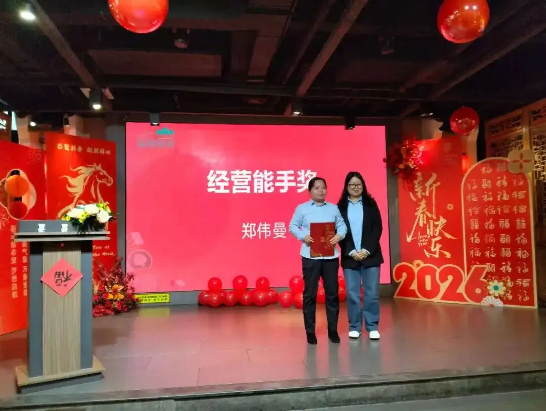 晚宴在温馨感人的氛围中接近尾声。主持人李霞代表公司向全体同仁、嘉宾及合作伙伴致以诚挚谢意与新年祝愿:“2026年是充满机遇的马年,愿我们继续携手,以赤诚之心服务业主,以坚实步伐守护家园。祝愿森加物业在新的一年里骏业日新、发展腾飞,与所有伙伴共创美好明天!”