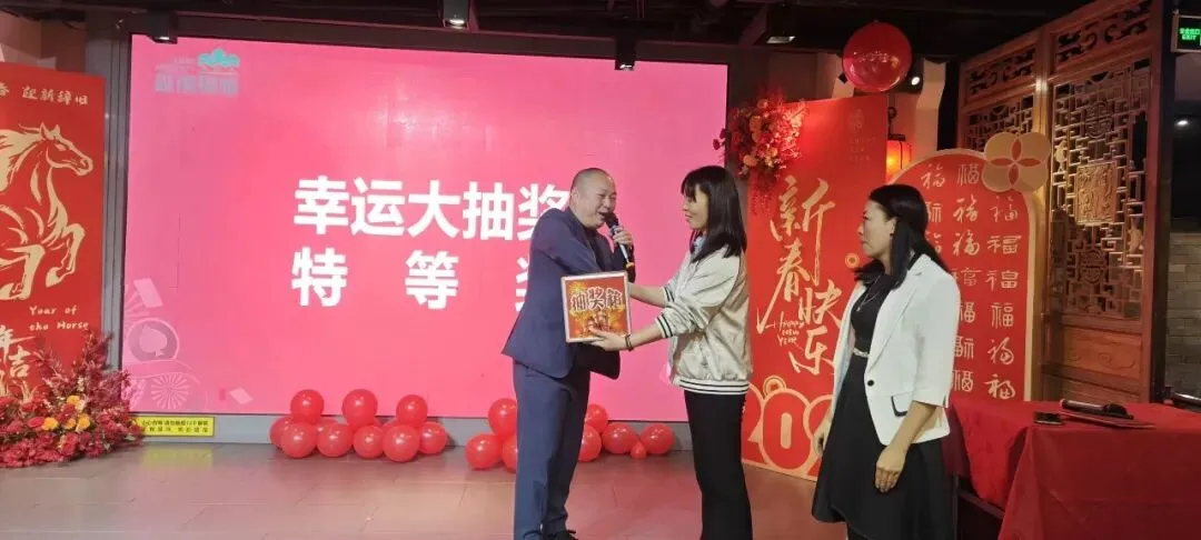 晚宴中最令人期待的抽奖环节惊喜连连。除公司设立的特、一、二、三等奖外,更收获了来自多方的深情厚谊,嘉宾额外增设14个幸运奖,现场气氛温馨热烈。席间音乐流淌,同仁、嘉宾与合作商伙伴畅叙情谊,现场洋溢着“森加一家亲”的温馨氛围。
