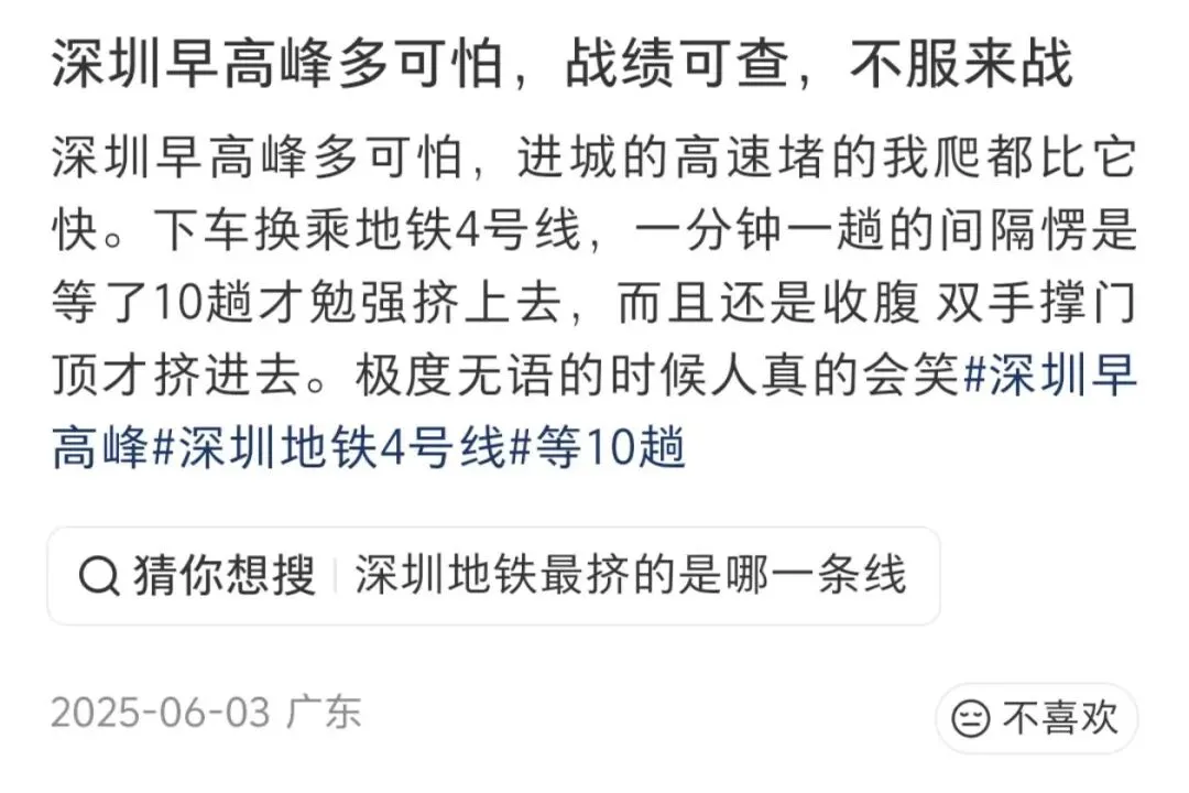 早晚高峰的地铁通勤,究竟是一种多么痛的领悟?有网友表示,下车换乘地铁4号线,一分钟一趟的间隔愣是等了10趟才勉强挤上去。