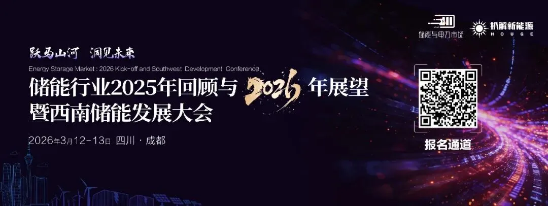 2026年3月12日至13日,储能行业2025年回顾与2026年展望暨西南储能发展大会将在成都举办。会将系统梳理2025年储能行业发展脉络,洞察2026年技术趋势与市场方向,聚焦西南地区储能发展机遇。扫描底部海报二维码,报名参加。