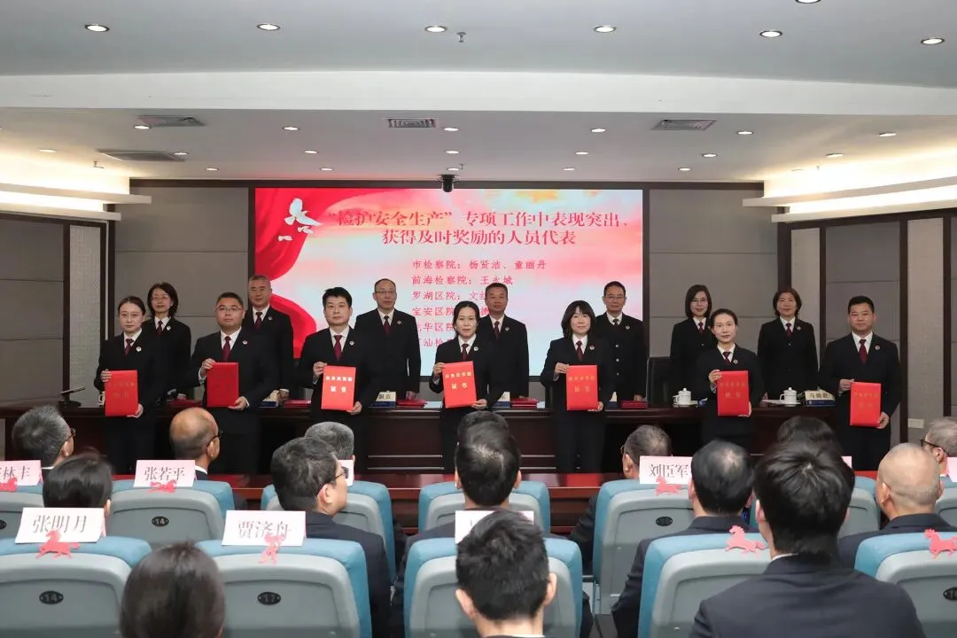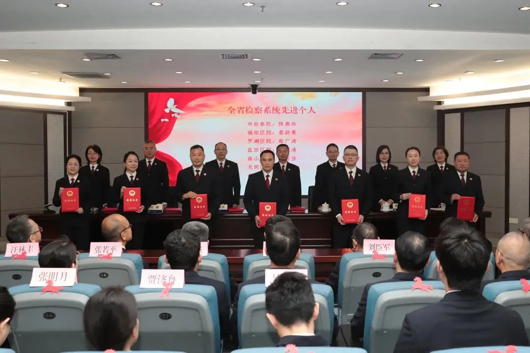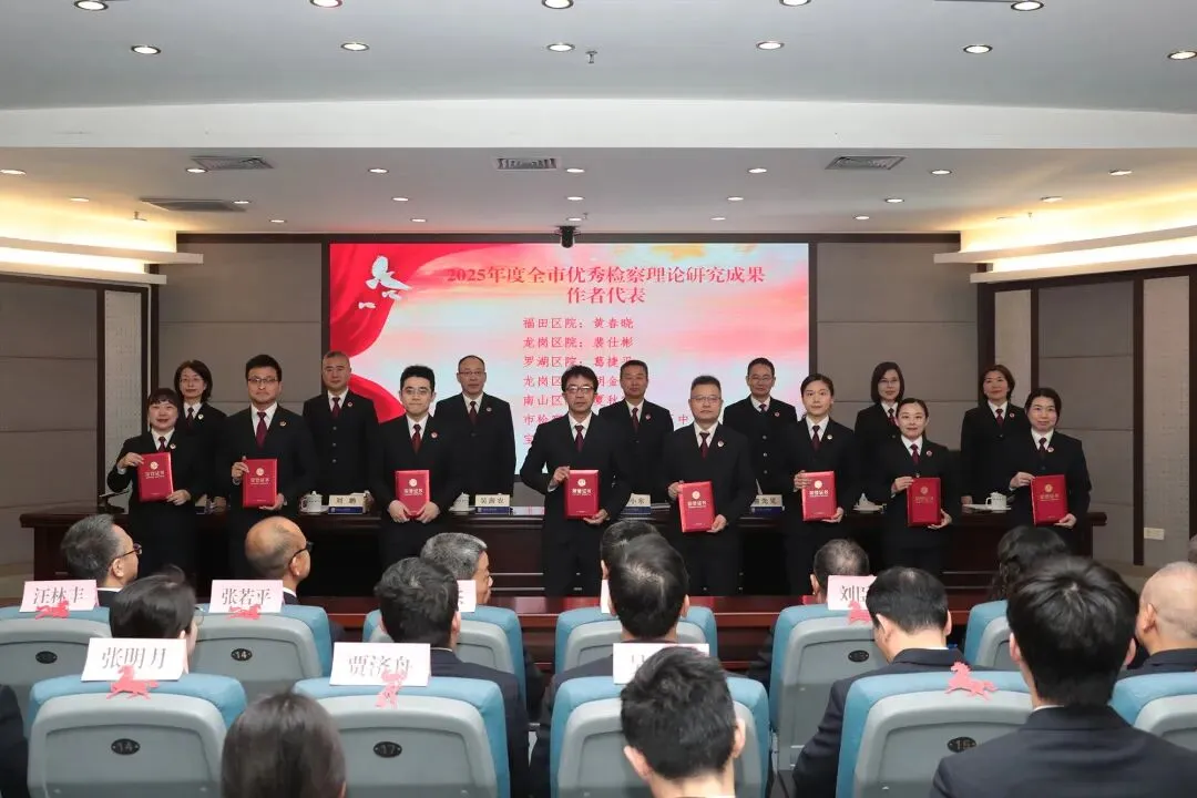 会议通报了全市检察机关2025年度获得相关奖项荣誉情况。市检察院领导班子成员为全省检察系统第九次“双先”表彰中深圳受表彰的集体和个人,在离退休干部党建工作、重点专项工作和检察理论研究等方面取得突出成绩的集体和个人,以及市检察院2025年度考核优秀、先进人员代表颁奖。李小东检察长为市检察院从检满30年人员颁发“检察荣誉章”。5名受表彰集体和个人代表立足各自岗位,分别作了精彩发言。