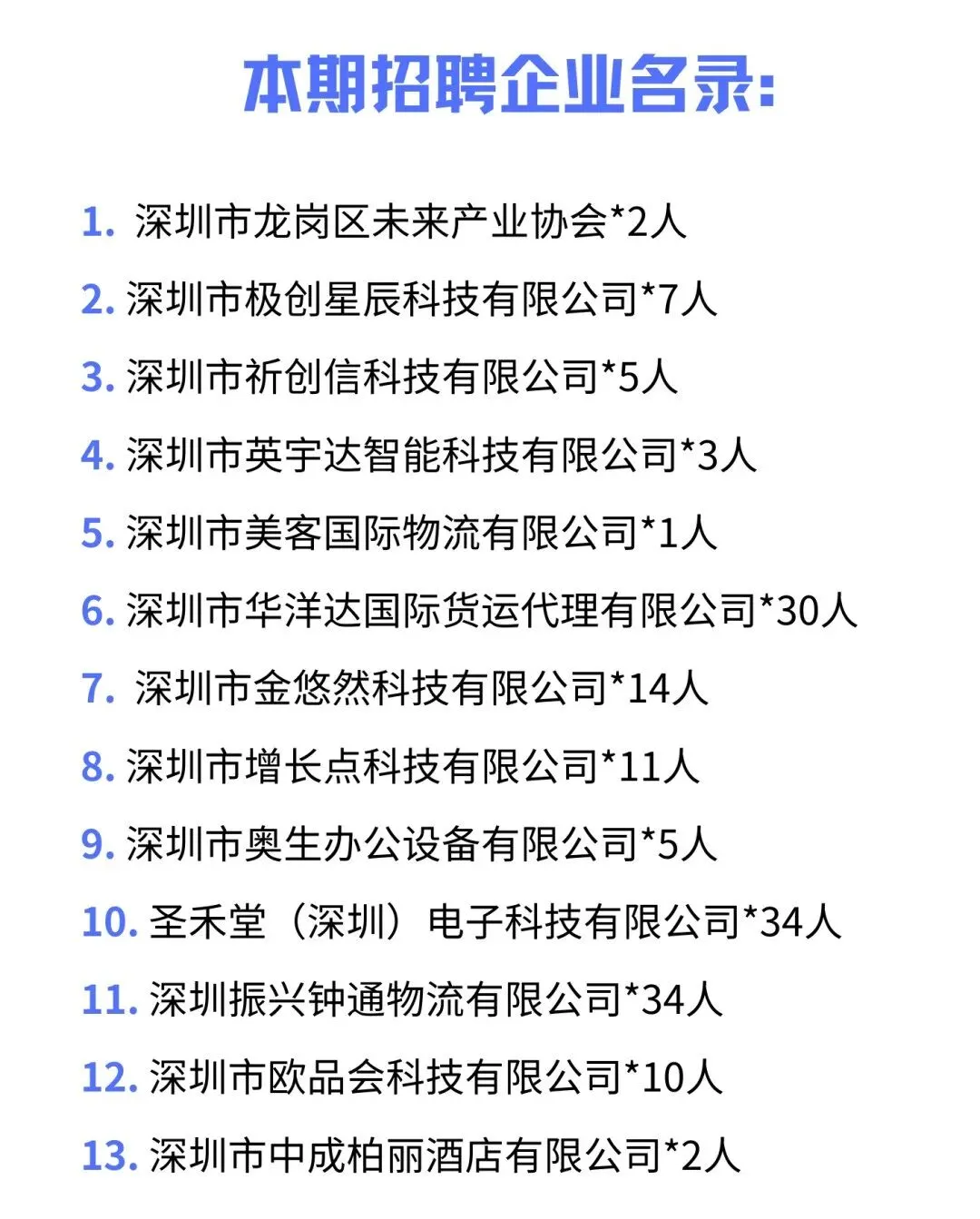 1. 以上招聘信息由企业发布,坂田街道统计和企业服务中心收集汇总,求职者若有意向可直接致电企业联系人咨询、面试。