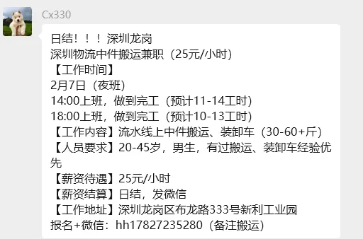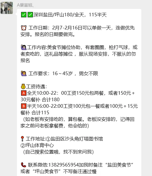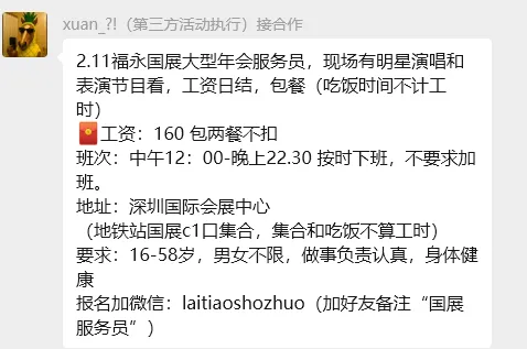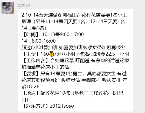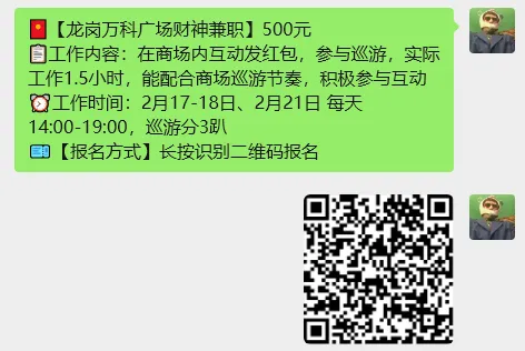 【深圳兼职】280元/河道巡查保安兼职、190元/花店兼职、190元/大运小工兼职、190元/地铁安检兼职、180元/晚搭建撤场兼职
