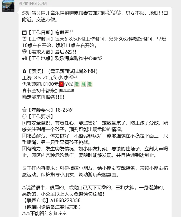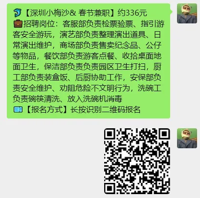 >【深圳兼职】华晨宇演唱会检票、欢乐谷¥240元、华发冰雪世界¥200元、游乐园¥240元、财神¥500元、小梅沙¥336元......
